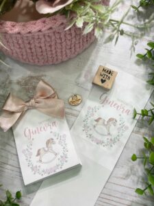 La cura artigianale e l’attenzione ai dettagli rendono questo porta confetti una scelta raffinata, ideale per valorizzare eventi come nascita, battesimo e compleanno. Ogni elemento è realizzato a mano e personalizzabile, per creare una bomboniera armoniosa e coordinata.