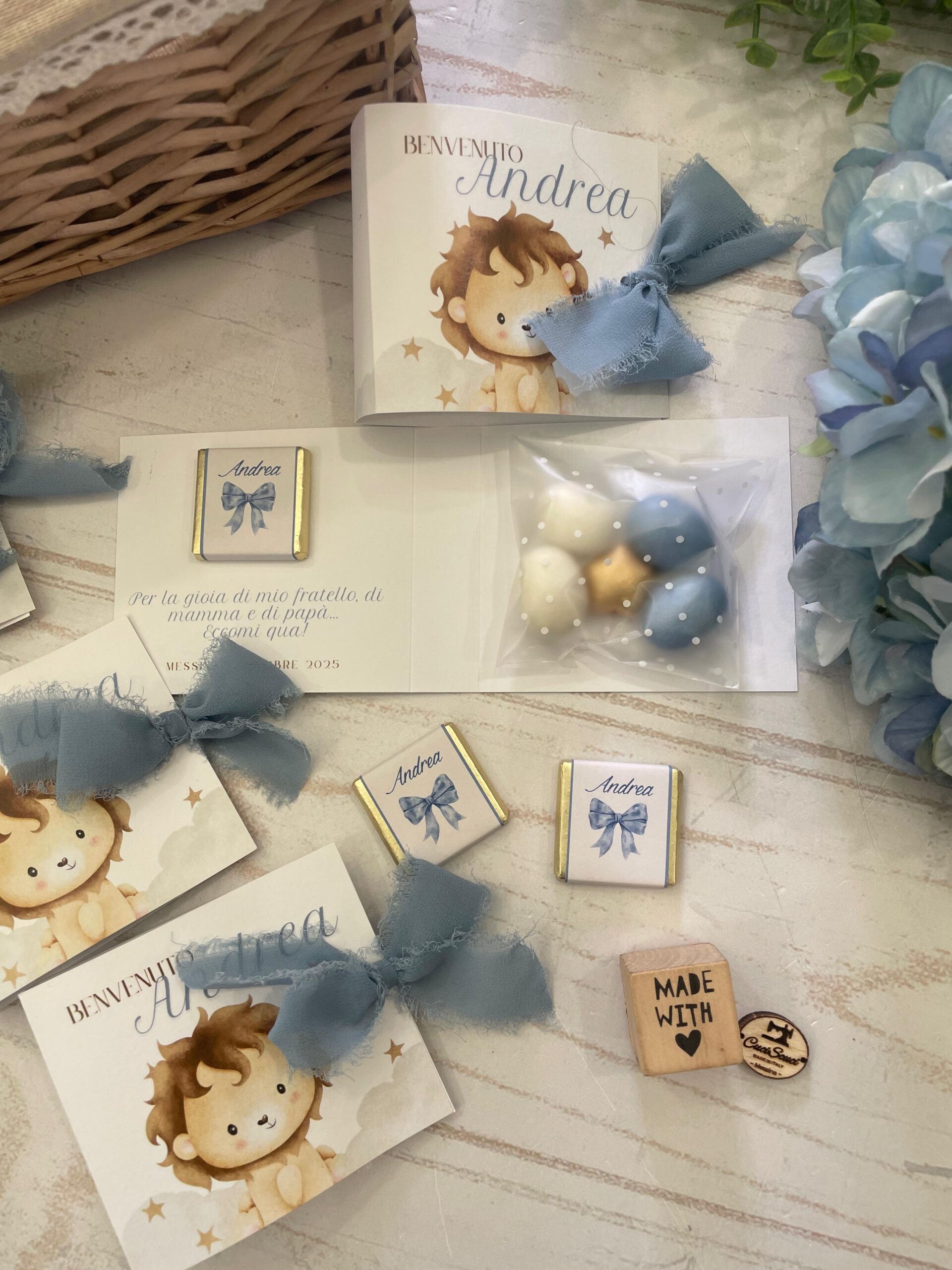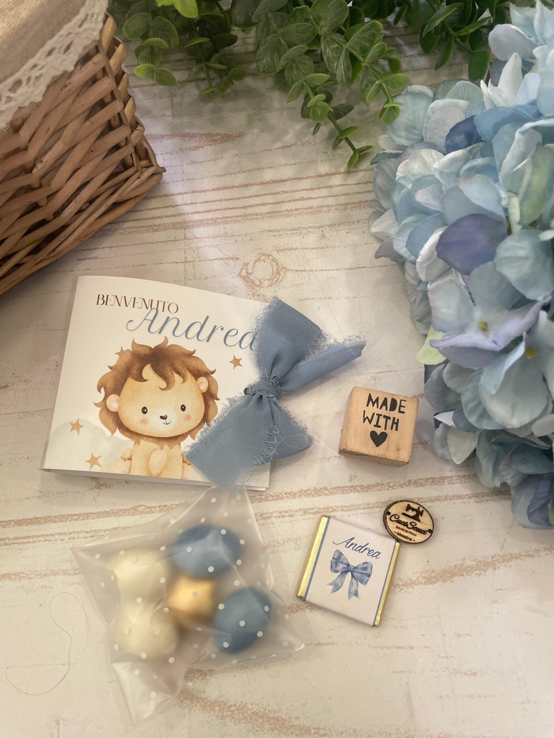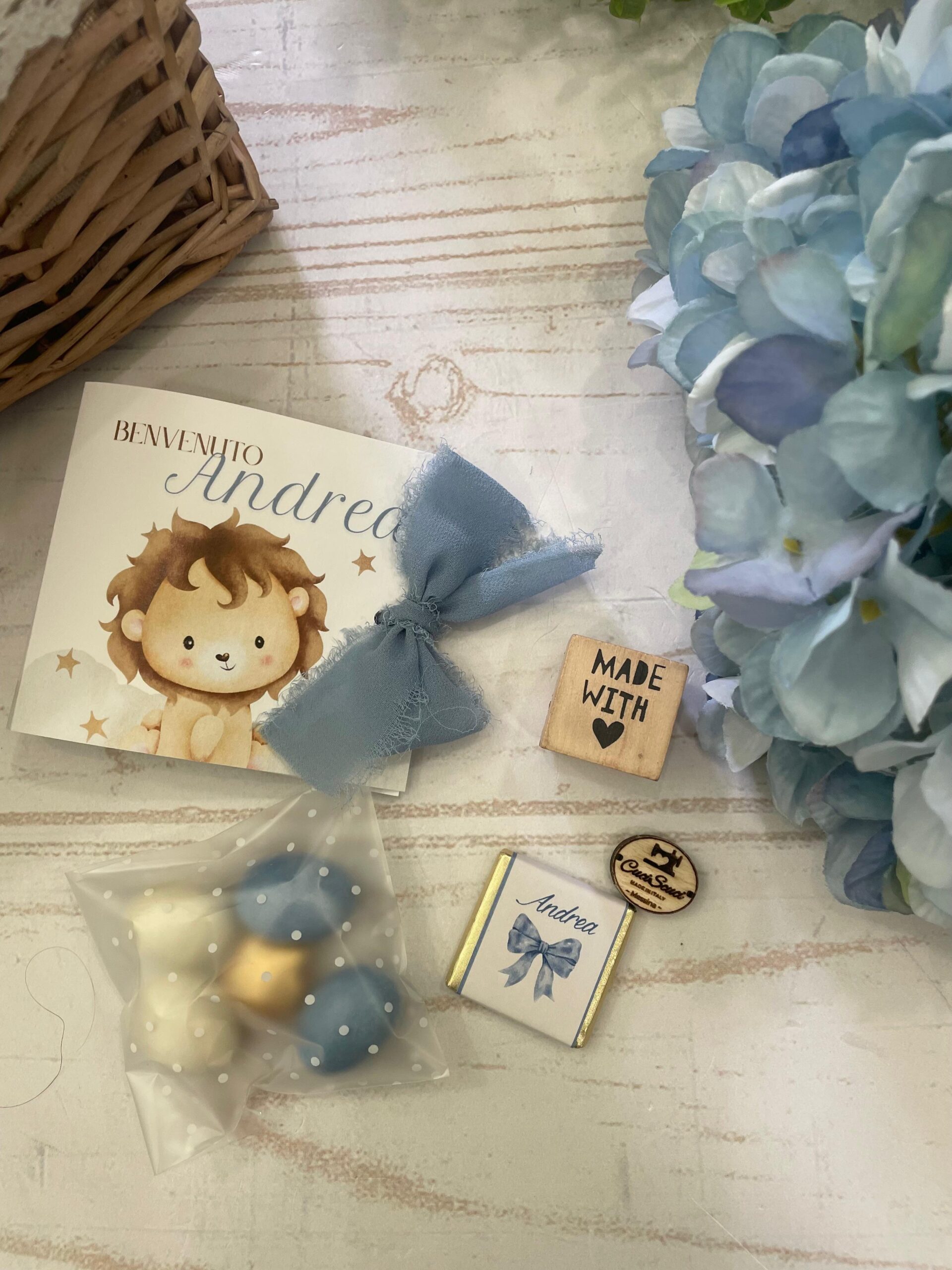 Recensisci per primo “Portaconfetti Personalizzato Little Lion con Grafica, Frase e Cioccolatino”