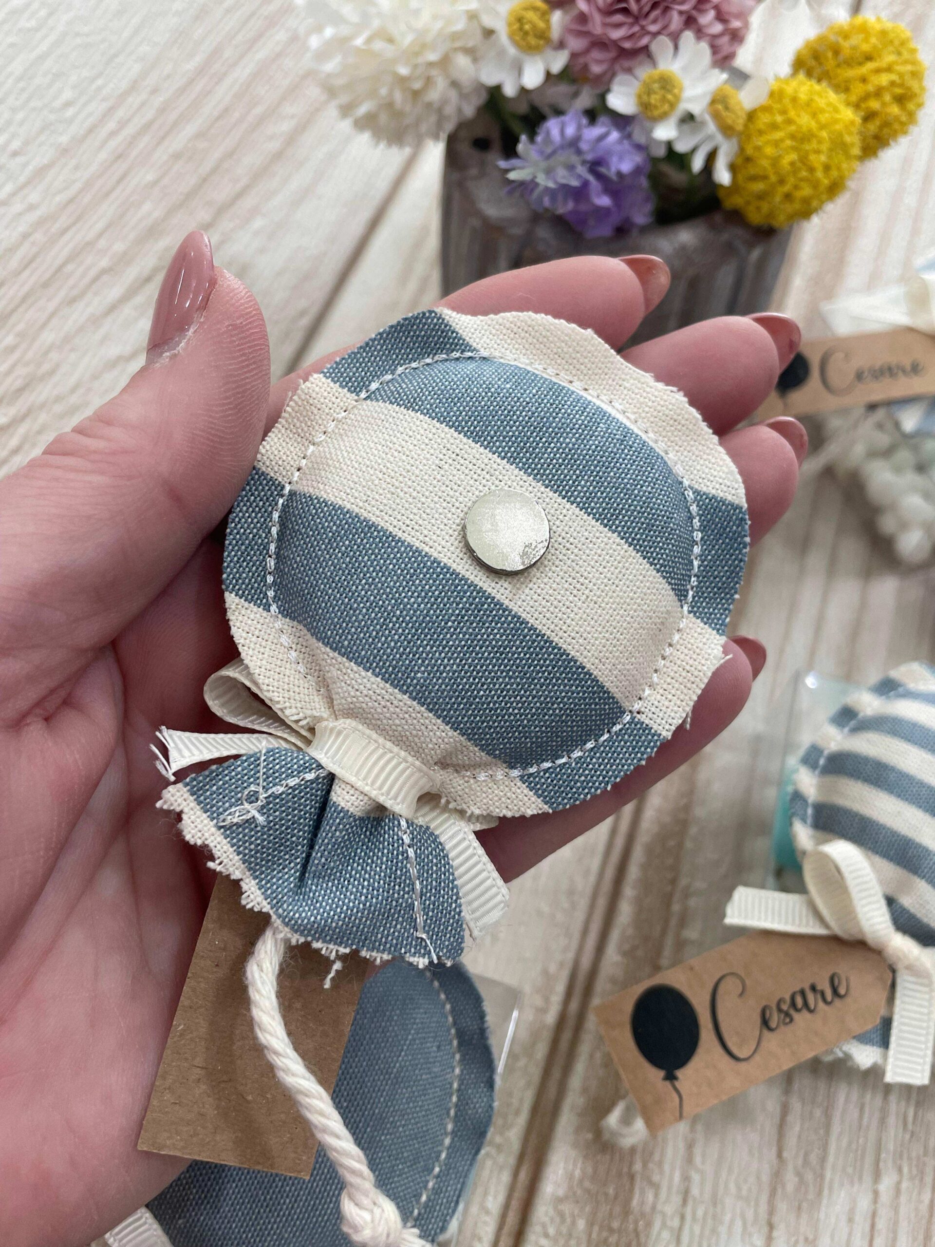 Un’elegante bomboniera artigianale, realizzata a mano dalla nostra sartoria con cura e attenzione per ogni dettaglio. Questo mini palloncino in tessuto è pensato per stupire i tuoi ospiti e lasciare un ricordo unico e raffinato delle tue occasioni speciali.