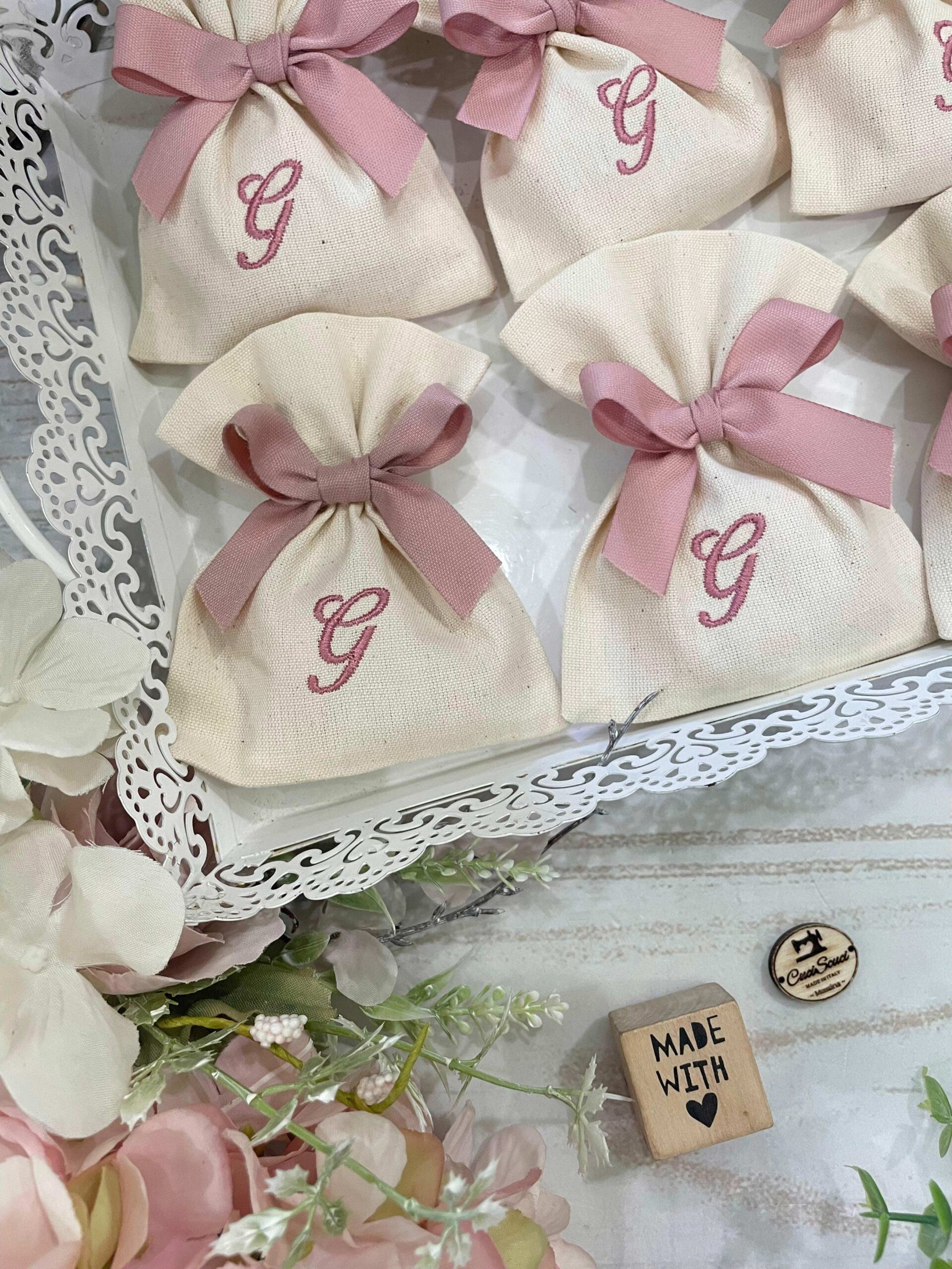 ✨ Mini Sacchetto Artigianale con Iniziale Rosa Antico ✨