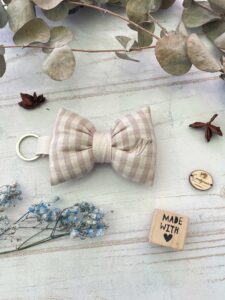 ✨ Papillon Portachiavi Artigianale con Iniziale Ricamata – Colore Mandorla ✨