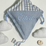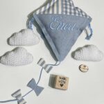 Creato in cotone tinto filo nei delicati toni del nuvola, con il nome del bimbo ricamato, è una bomboniera elegante e raffinata, ideale per celebrare con dolcezza i momenti più speciali.