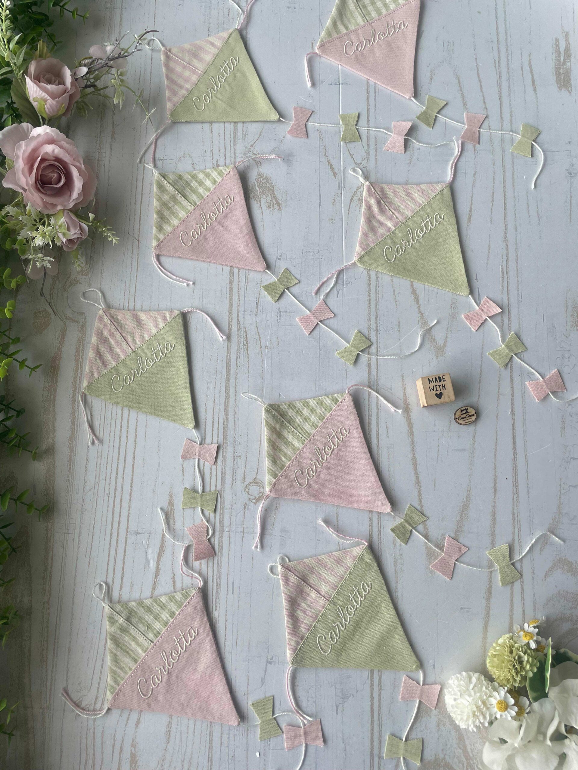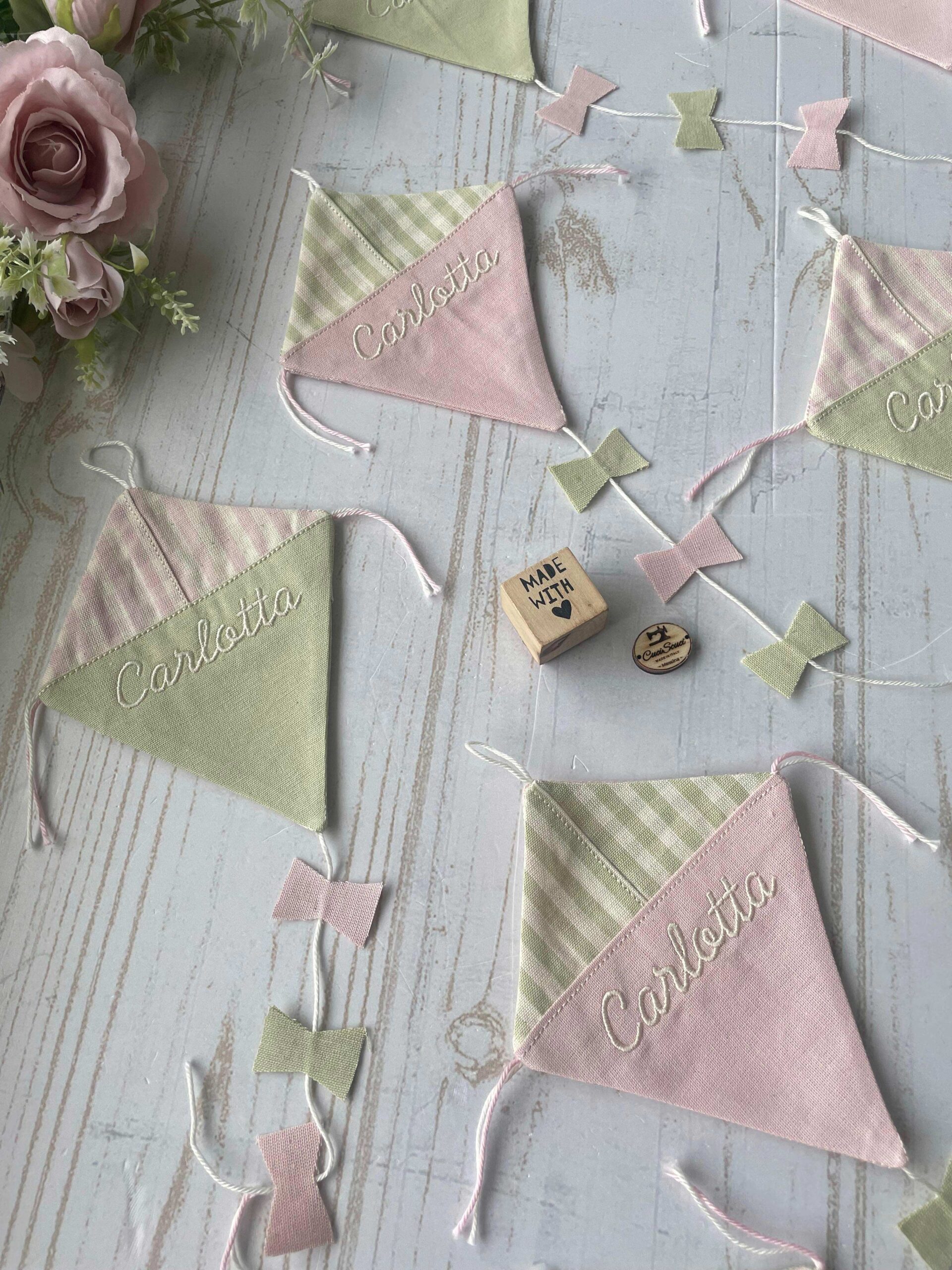 Sacchetto Sartoriale Aquilone Verde Olio e Rosa Cipria con Ricamo Nome