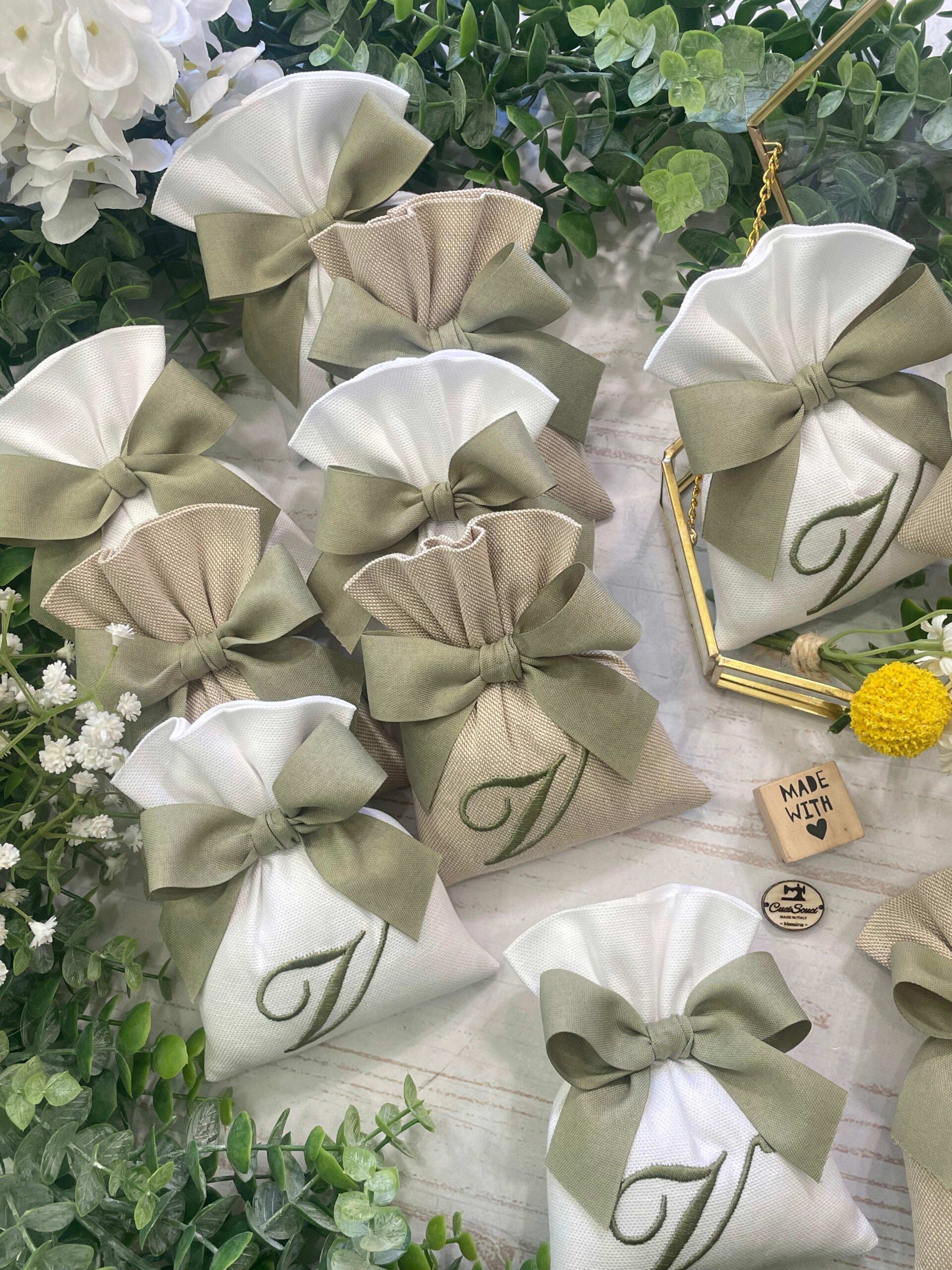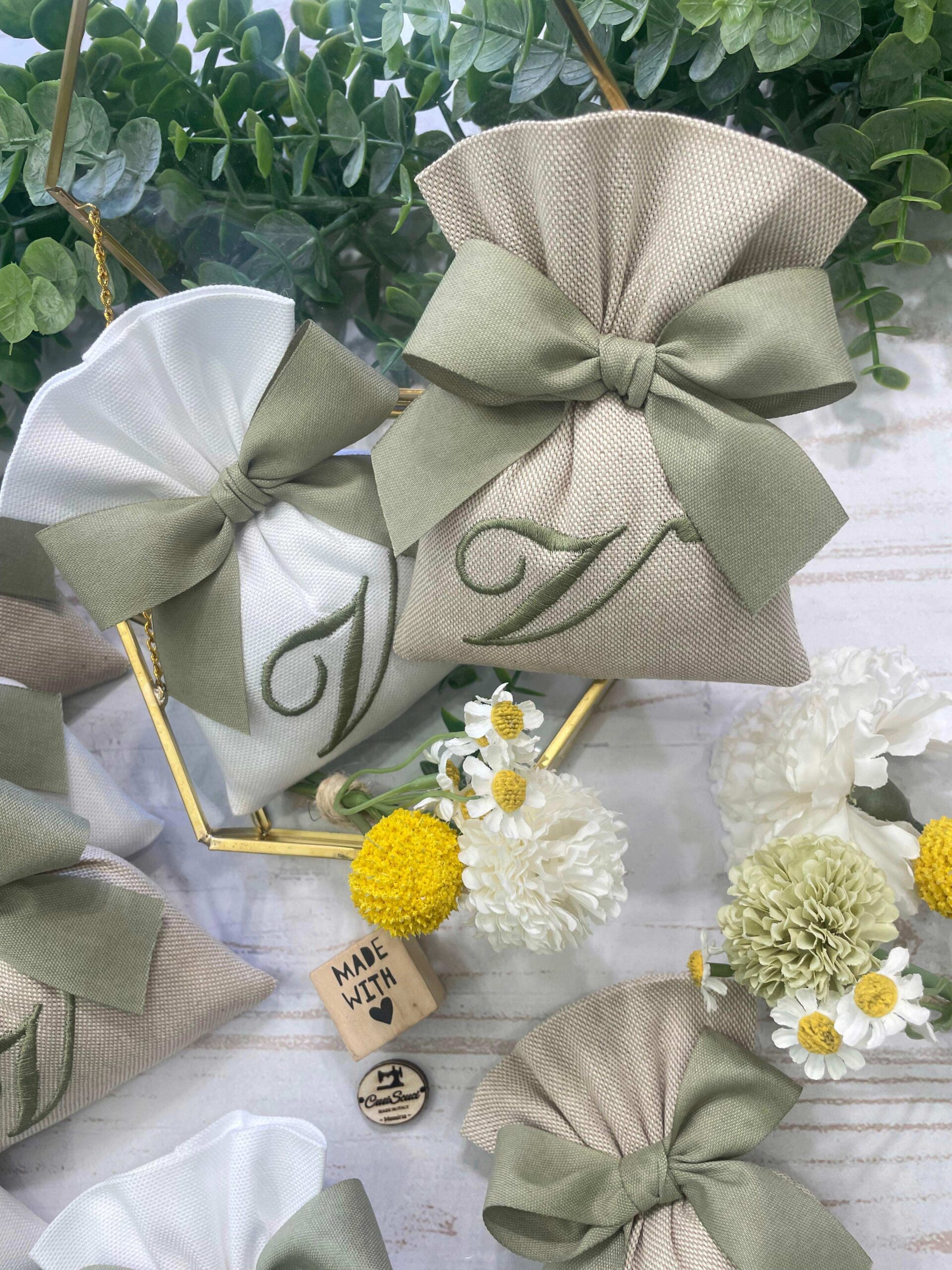 ✨ Sacchetto Sartoriale in Cotone Panama con Iniziale Verde Salvia ✨