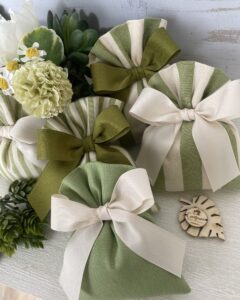 Un’elegante bomboniera artigianale, realizzata interamente a mano dalla nostra sartoria con cura e passione per i dettagli.