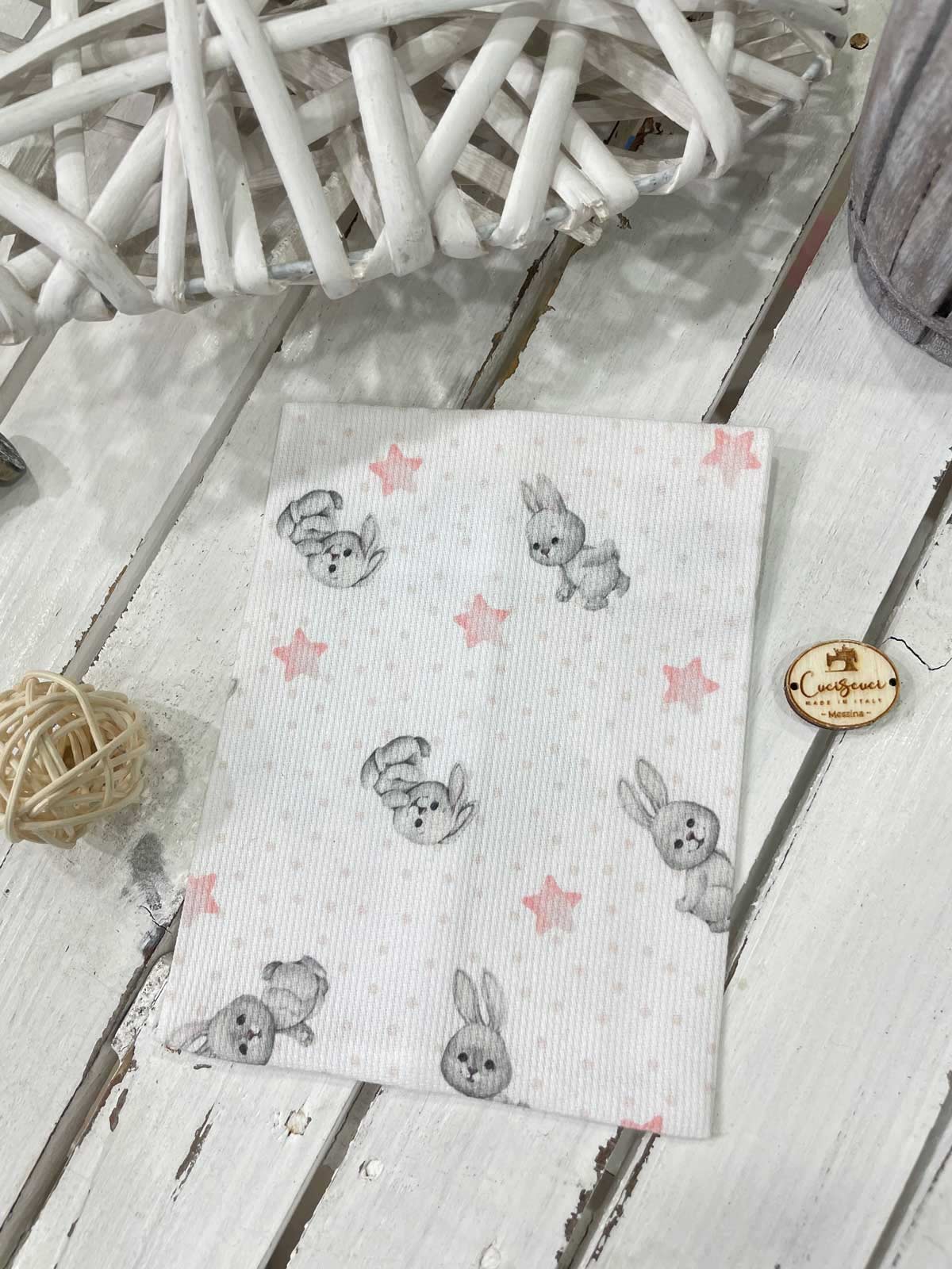 Tessuto: rigatino di cotone bianco fantasia coniglietti