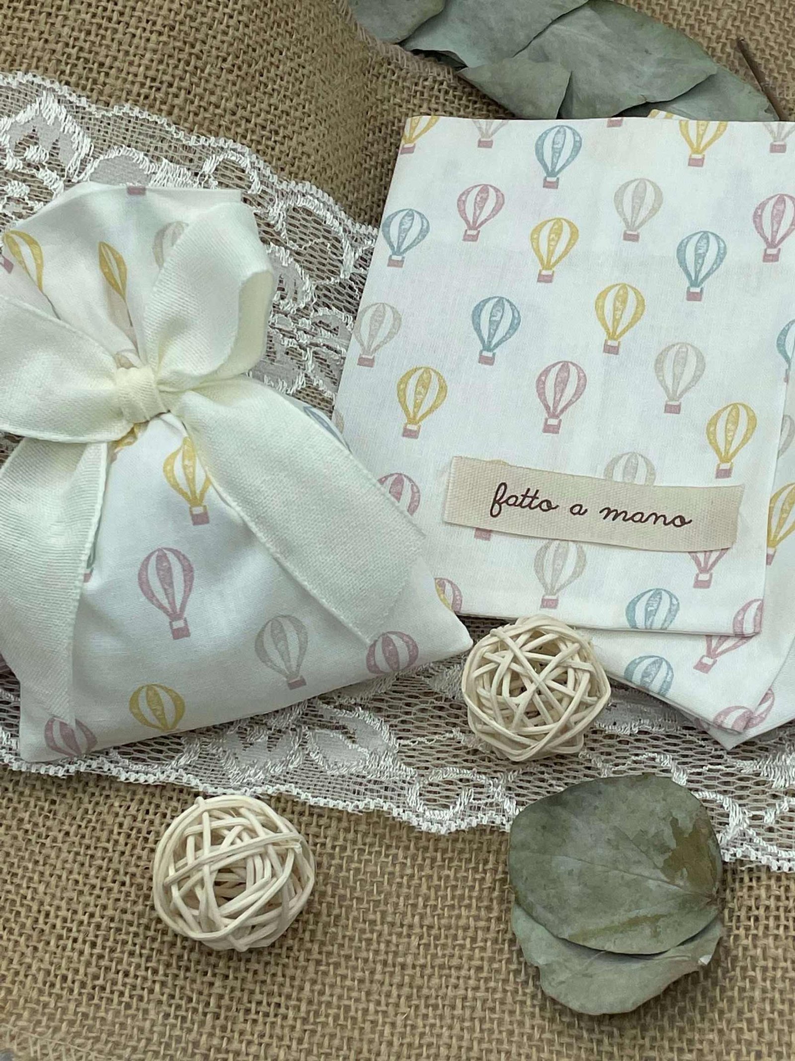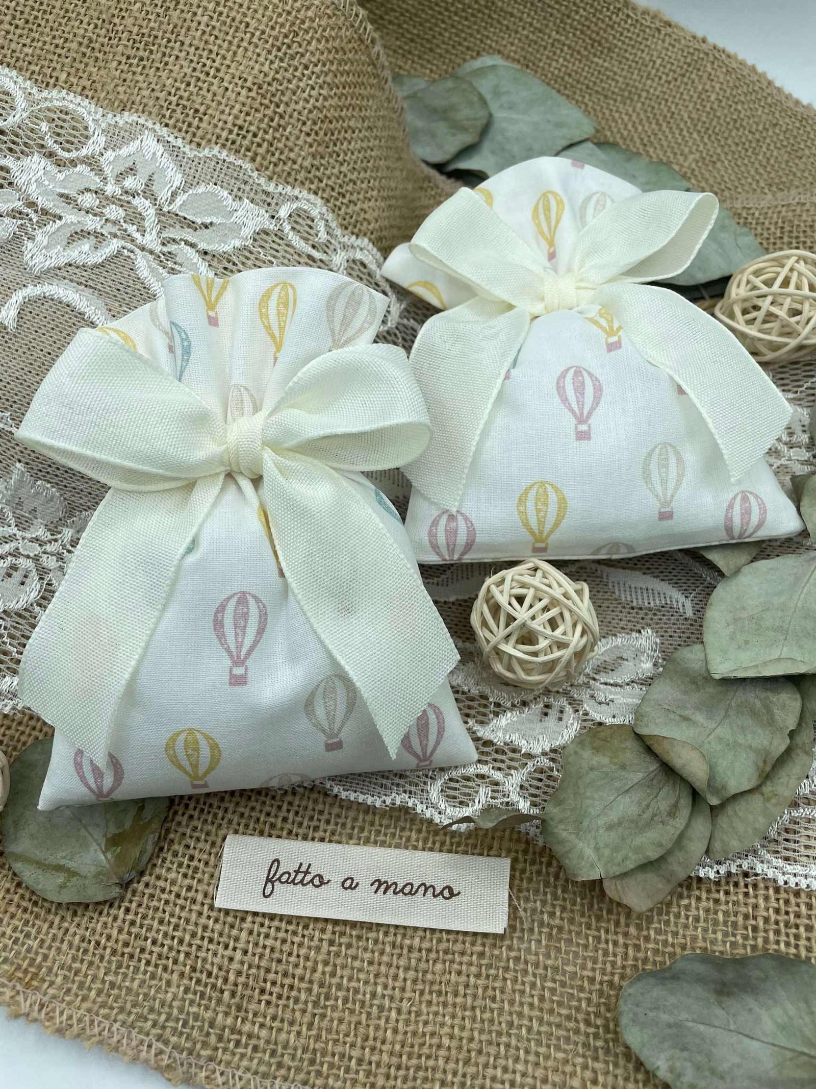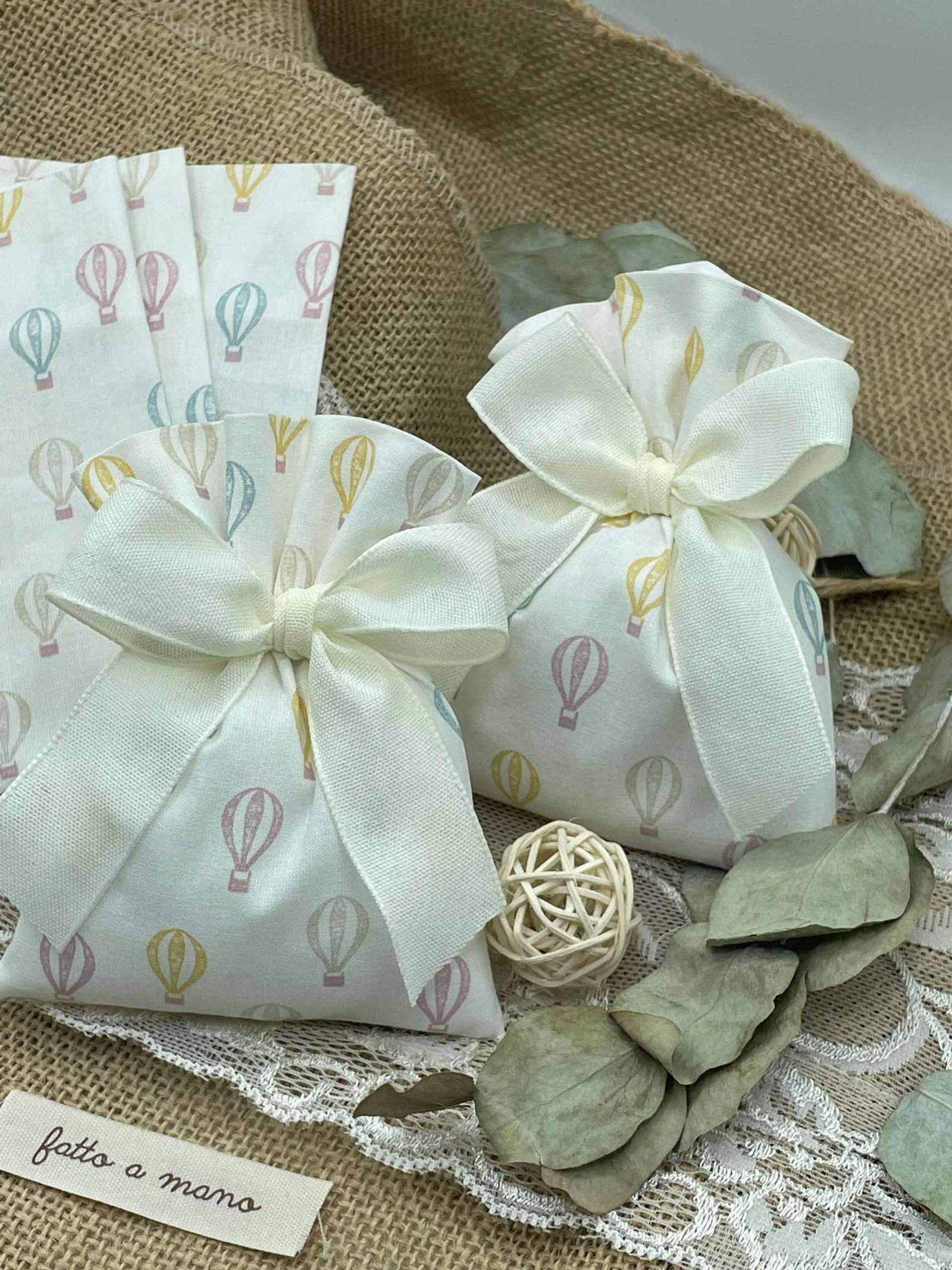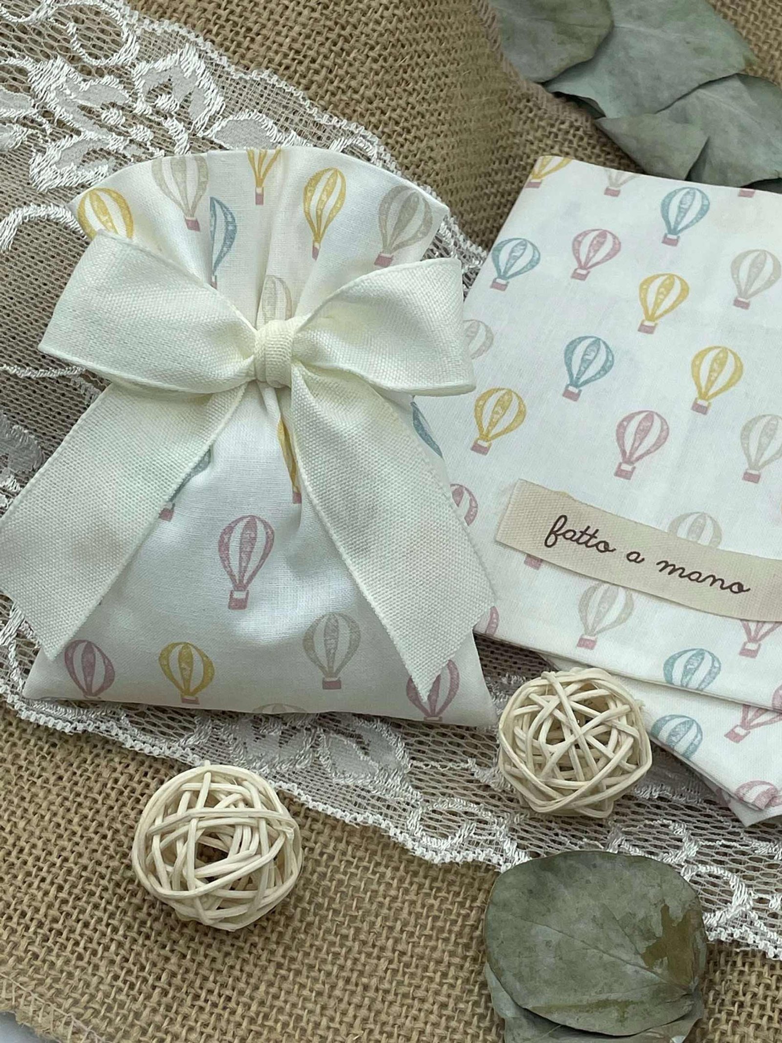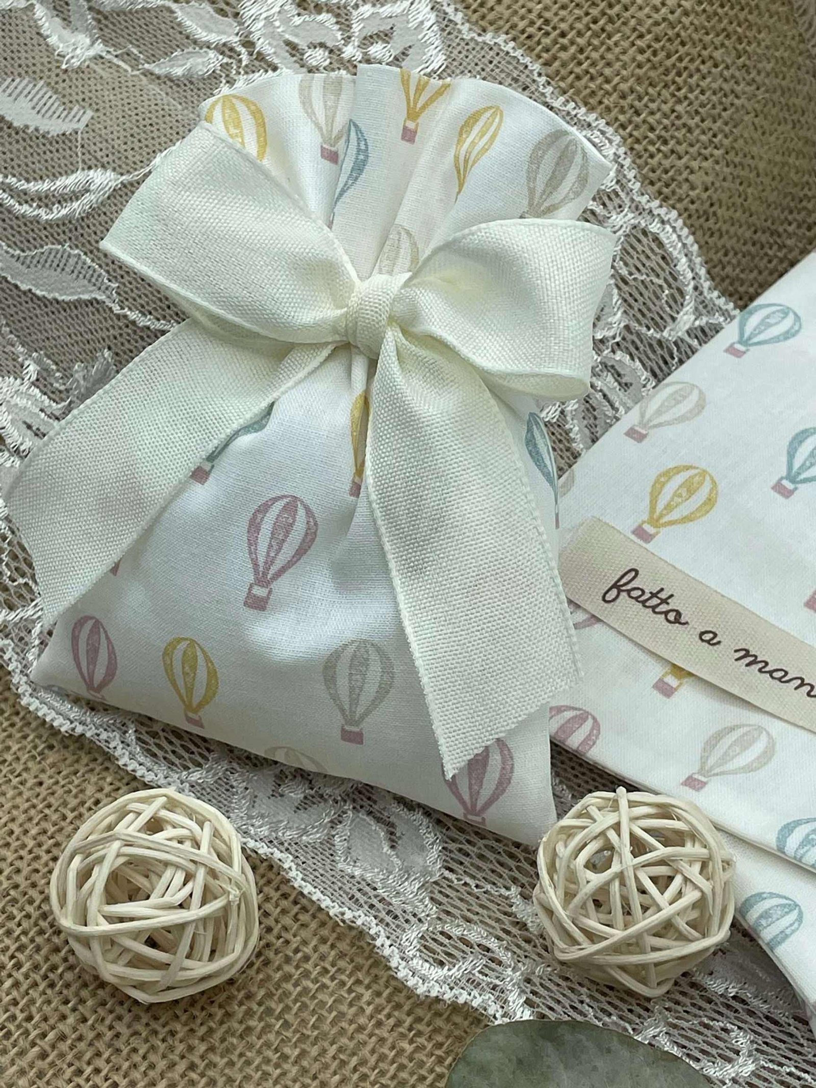 ✨ Sacchetto Sartoriale Bianco con Fantasia Mongolfiere ✨