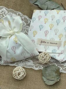 Sacchetto in cotone bianco fantasia mongolfiere colorate