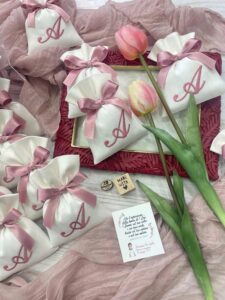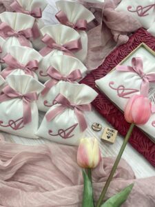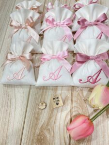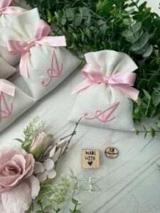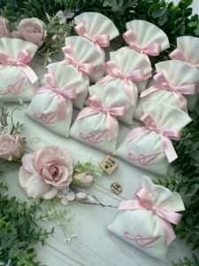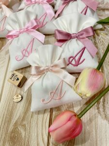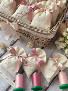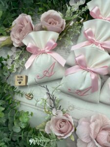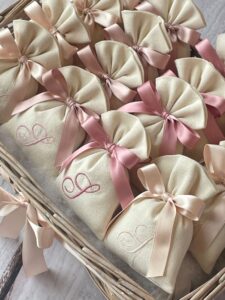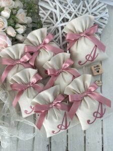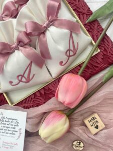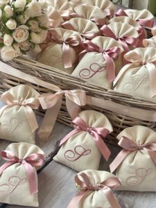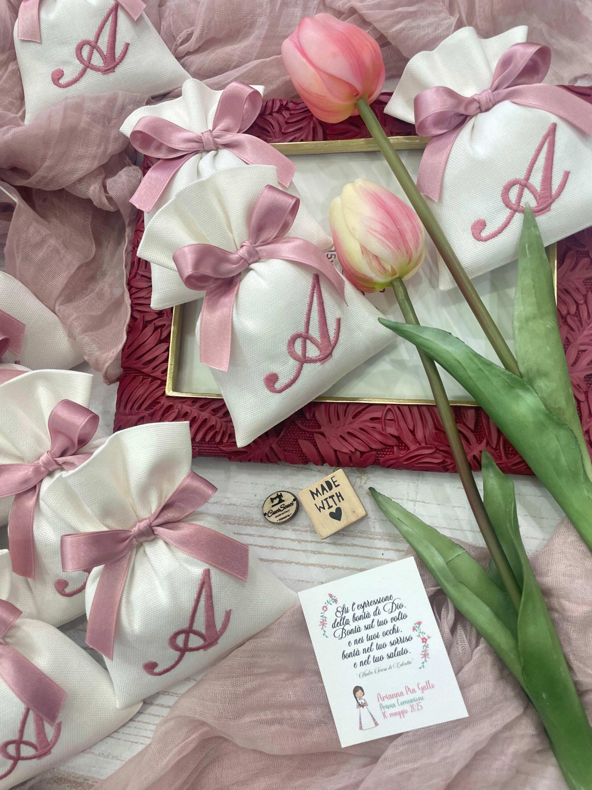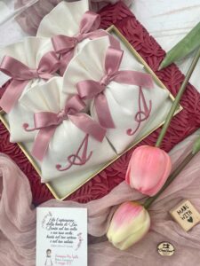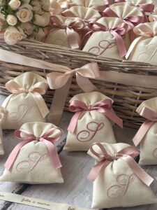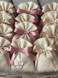 Un’elegante bomboniera artigianale, realizzata interamente a mano dalla nostra sartoria con cura e passione per i dettagli.