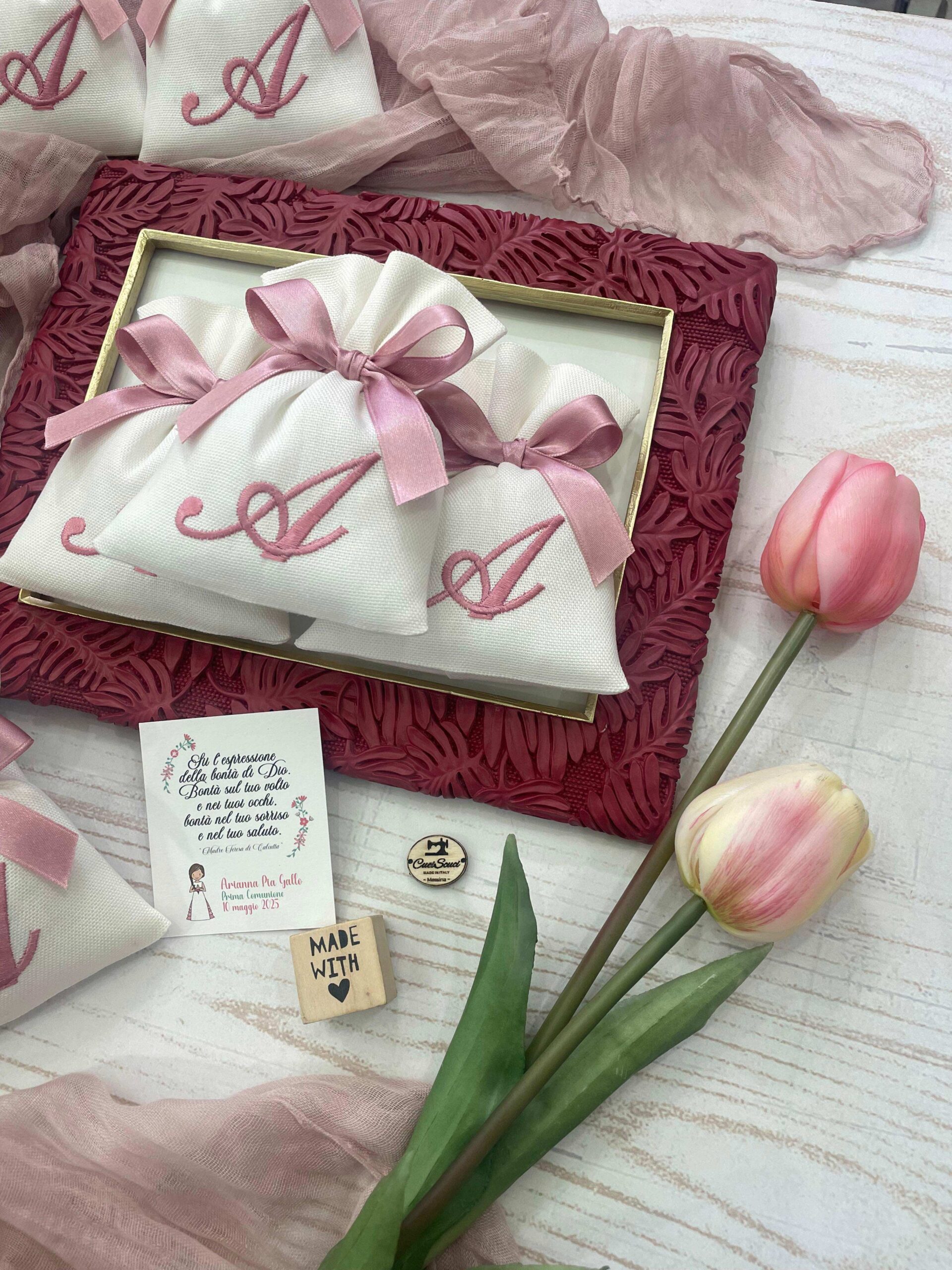 Fai da Te: ricevi il sacchetto già cucito e ricamato, da completare e confezionare personalmente secondo le tue preferenze.
