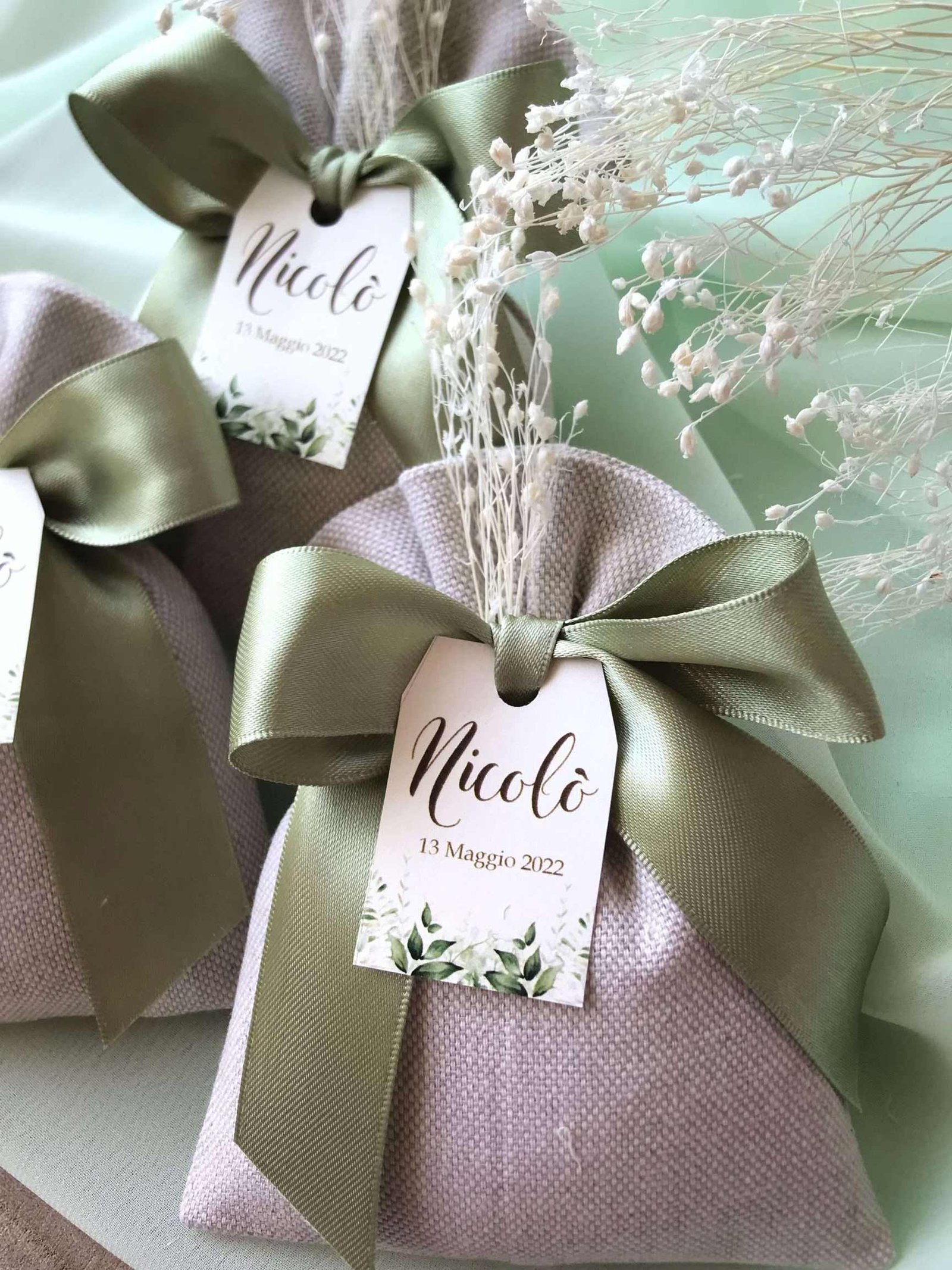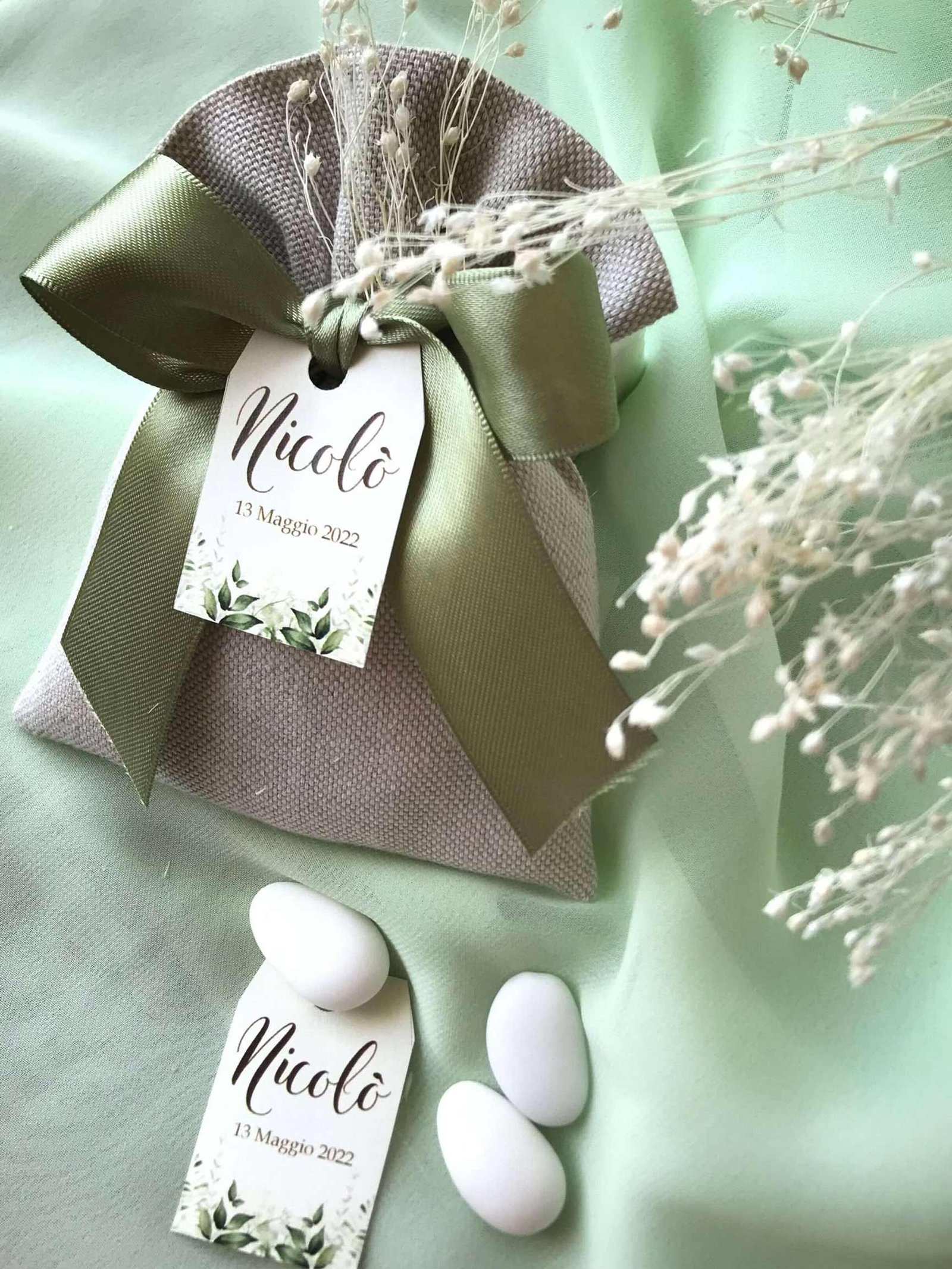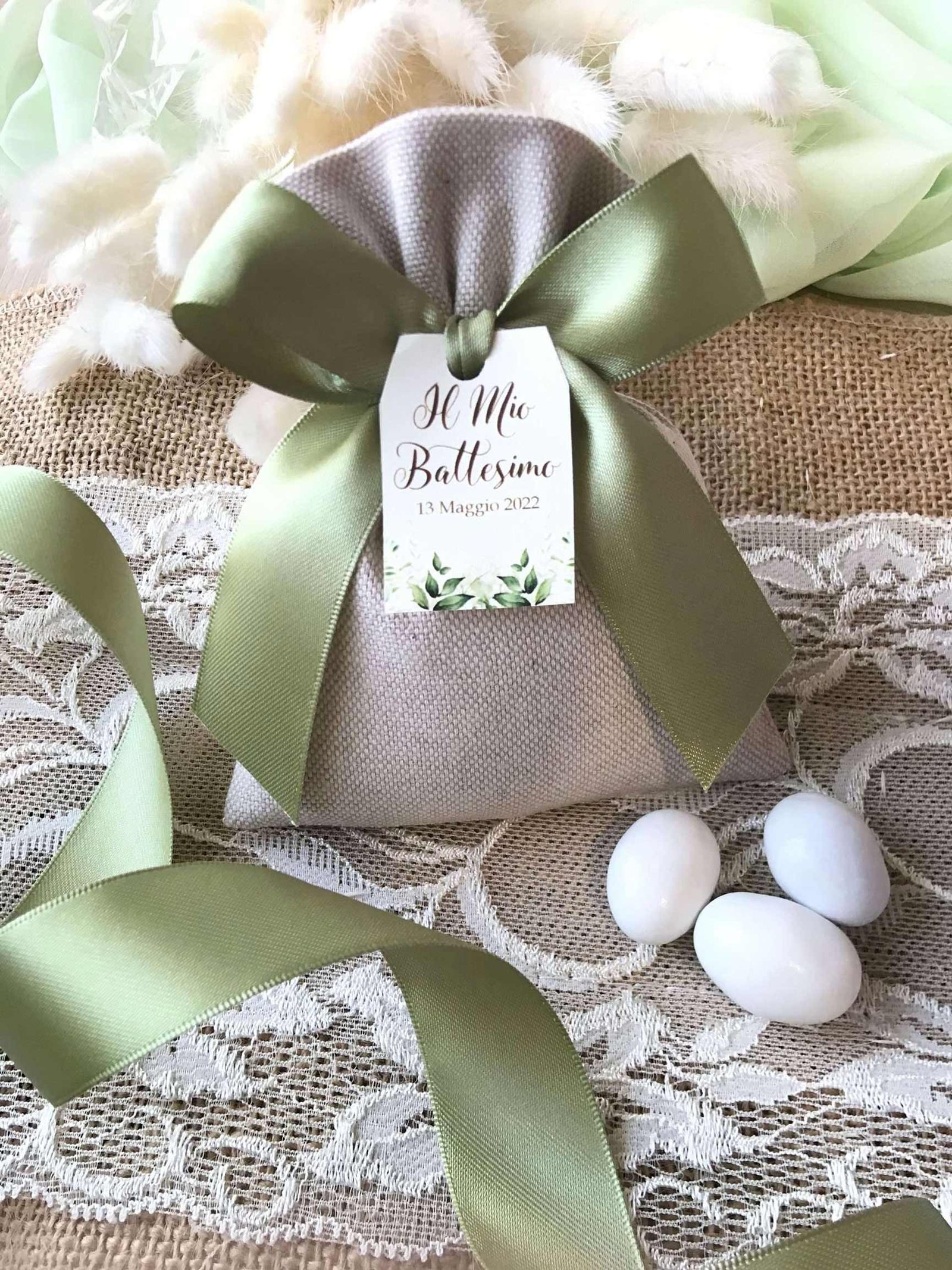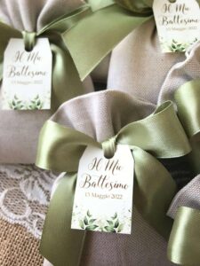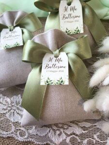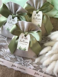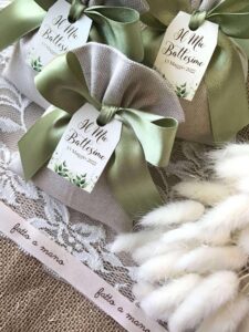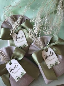 Un’elegante bomboniera artigianale, realizzata a mano dalla nostra sartoria con passione e cura per i dettagli.
