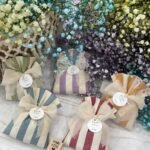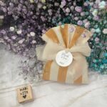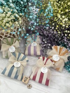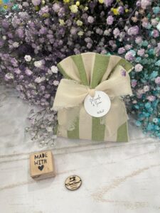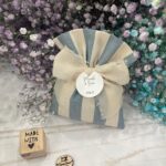 • Confezionato – bomboniera pronta da donare ai tuoi ospiti, con sacchetto confezionato con imbottitura in ovatta, fiocco abbinato e 5 confetti in busta sigillata