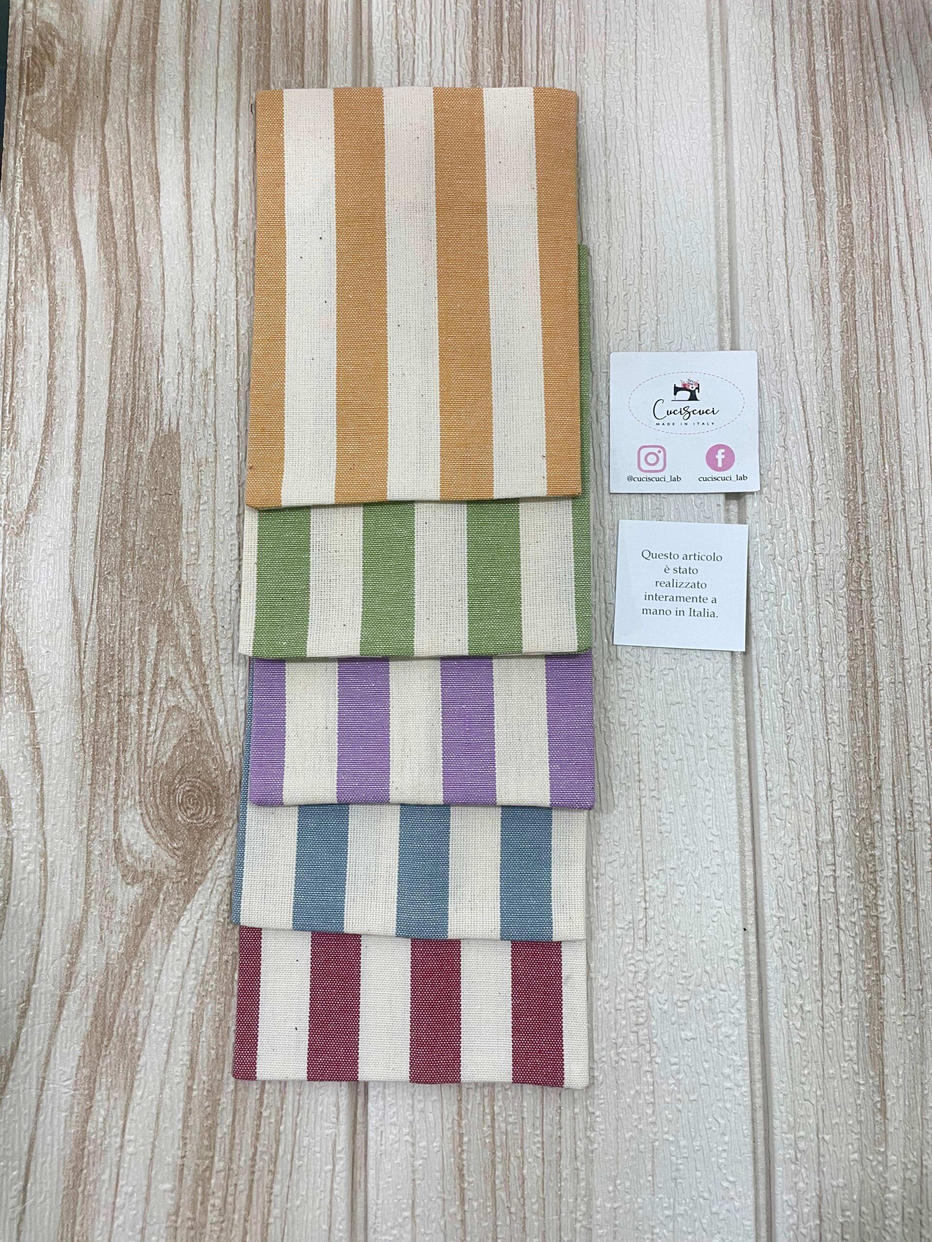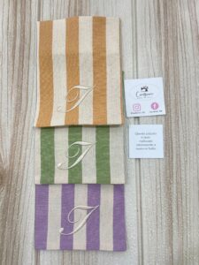 Il cotone tinto filo è disponibile in un assortimento di colori raffinati — senape, lilla, amarena, azzurro polvere e verde kiwi — ideali per valorizzare qualsiasi tema o palette del tuo evento.