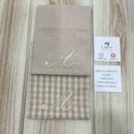 Questo raffinato sacchetto in cotone tinto filo nei toni del mandorla, impreziosito dal ricamo di un’iniziale personalizzata, dona un tocco di calore e raffinatezza a ogni occasione.