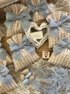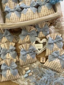 Un’elegante bomboniera sartoriale, realizzata interamente a mano con passione e cura per i dettagli dalla nostra sartoria.