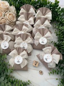 Un’elegante bomboniera, realizzata interamente a mano dalla nostra sartoria con passione e cura per i dettagli.