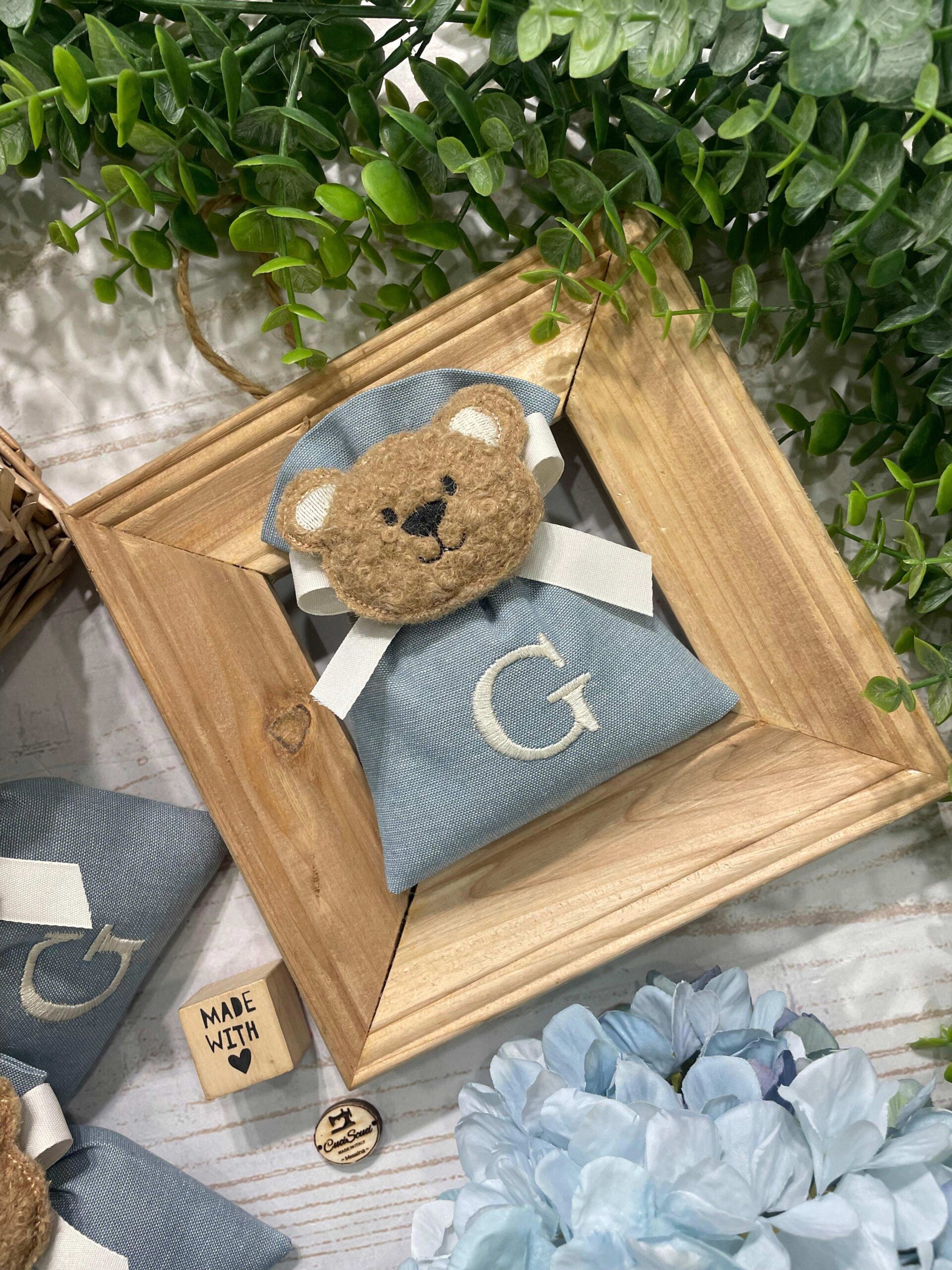 ✨ Sacchetto Sartoriale Nuvola con Iniziale Ricamata e Orsetto Calamita ✨