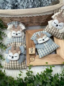 Un sacchetto artigianale realizzato con cura sartoriale e attenzione ai dettagli, pensato per rendere speciale ogni occasione dedicata ai più piccoli.