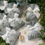 • Confezionato – bomboniera pronta da donare, completa di imbottitura in ovatta, fiocco abbinato e 5 confetti in busta sigillata