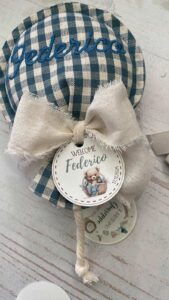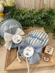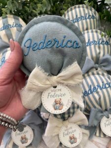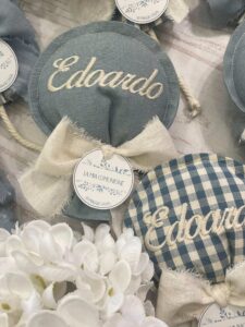 Un’elegante bomboniera artigianale, realizzata interamente a mano dalla nostra sartoria con passione e cura per i dettagli.