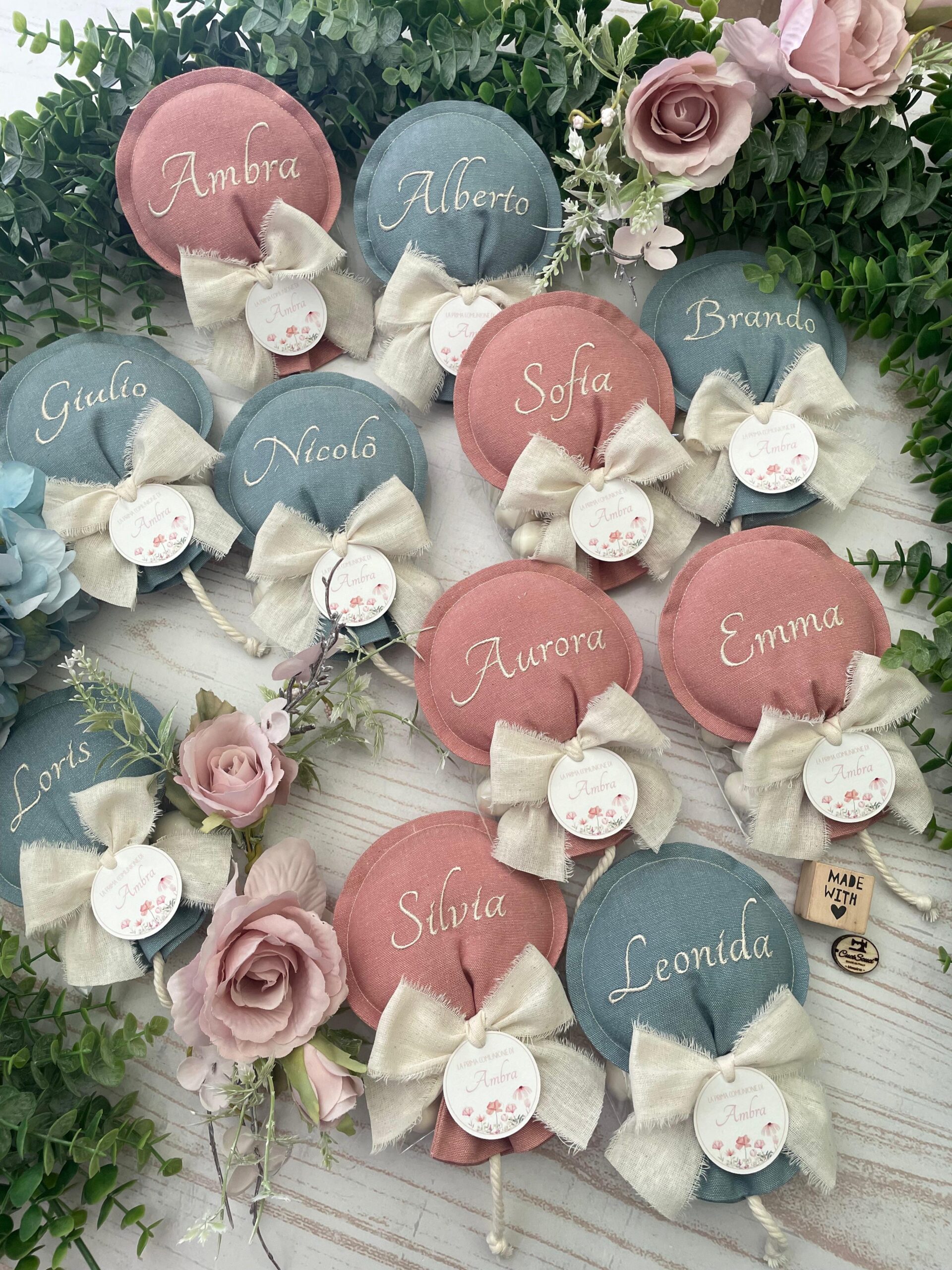 💌 Ogni sacchetto può essere personalizzato con il nome ricamato. Ogni palloncino può riportare un nome diverso, per un effetto ancora più speciale e personalizzato.