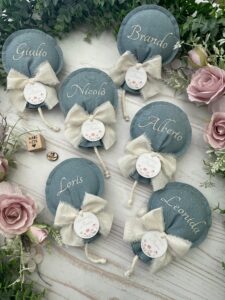 Un’elegante bomboniera sartoriale, realizzata interamente a mano dalla nostra sartoria con passione e cura per i dettagli.