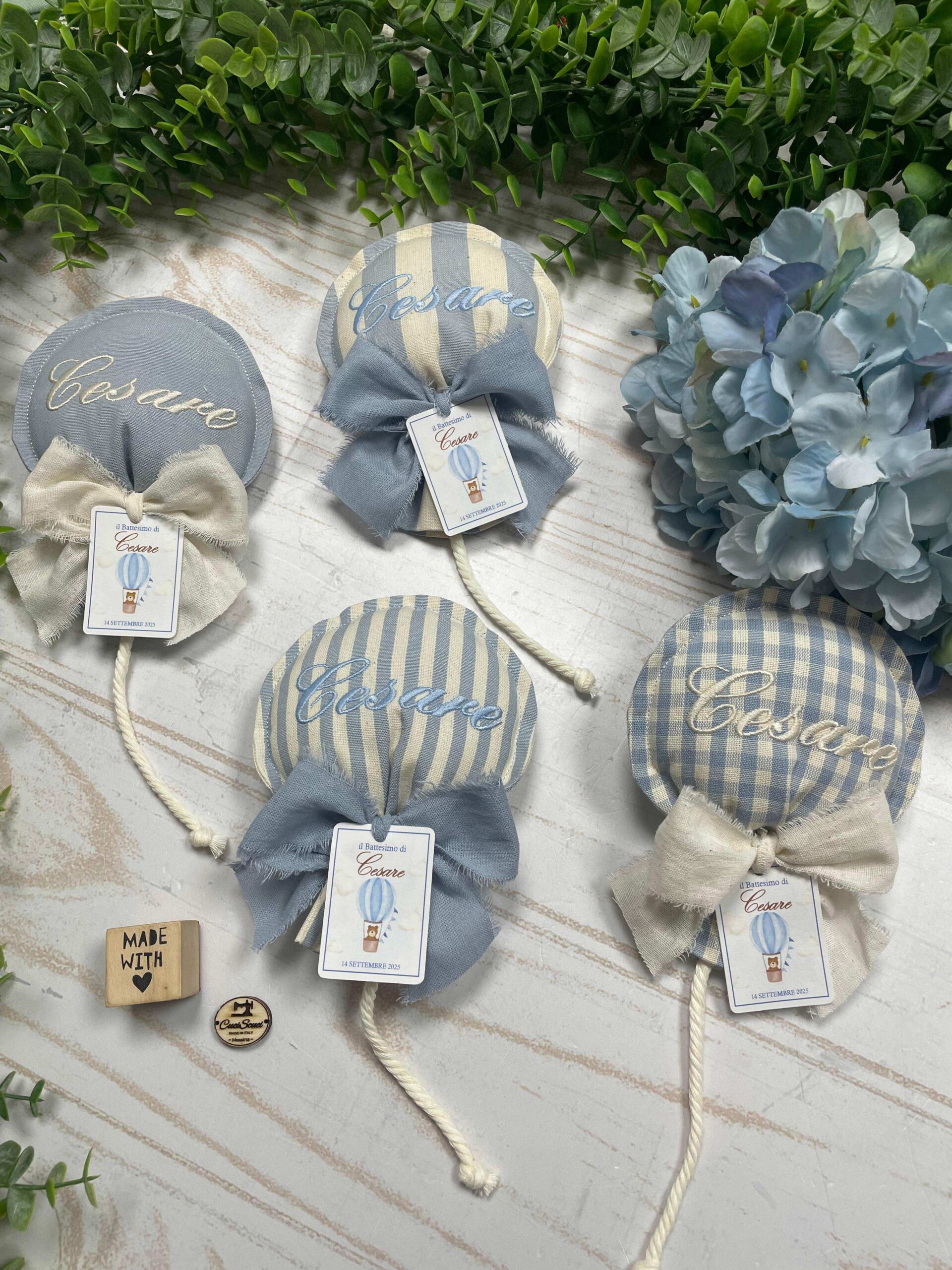 Un sacchetto bomboniera originale e raffinato, interamente realizzato a mano dalla nostra sartoria con cotone tinto filo di alta qualità.