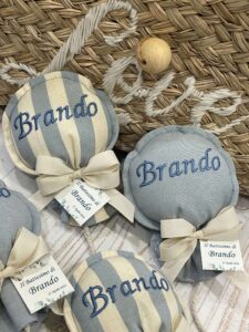 Un sacchetto bomboniera originale e raffinato, interamente realizzato a mano dalla nostra sartoria con cotone tinto filo di alta qualità.