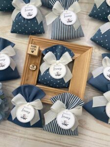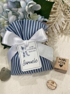 Un’elegante bomboniera artigianale, realizzata interamente a mano dalla nostra sartoria con cura e passione per i dettagli. Questo sacchetto in rigatino di cotone è disponibile in fantasie assortite (o a scelta) nei delicati toni carta da zucchero, perfetto per donare un tocco raffinato ai tuoi ospiti.