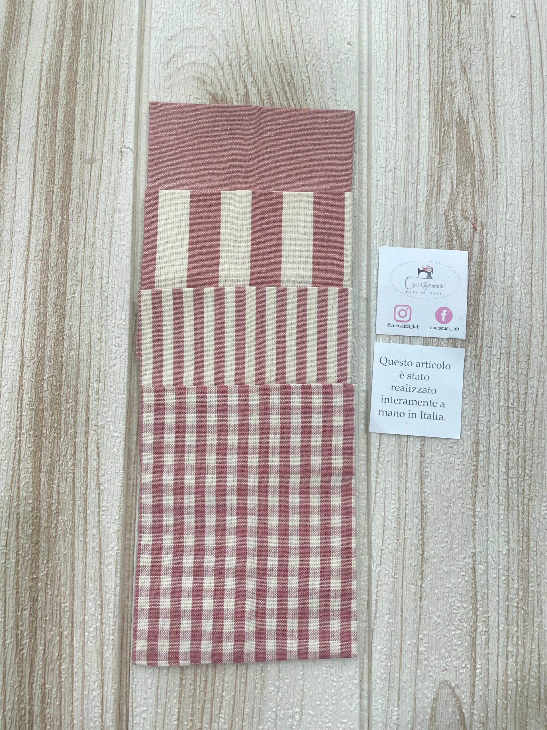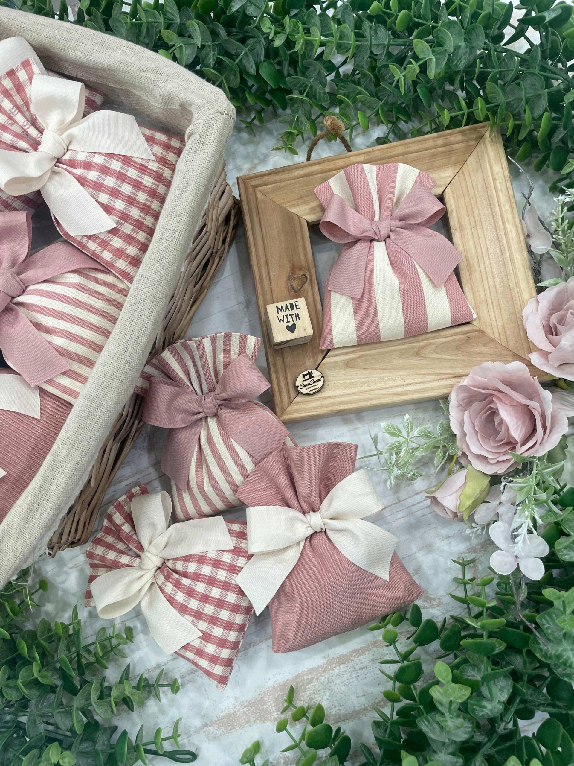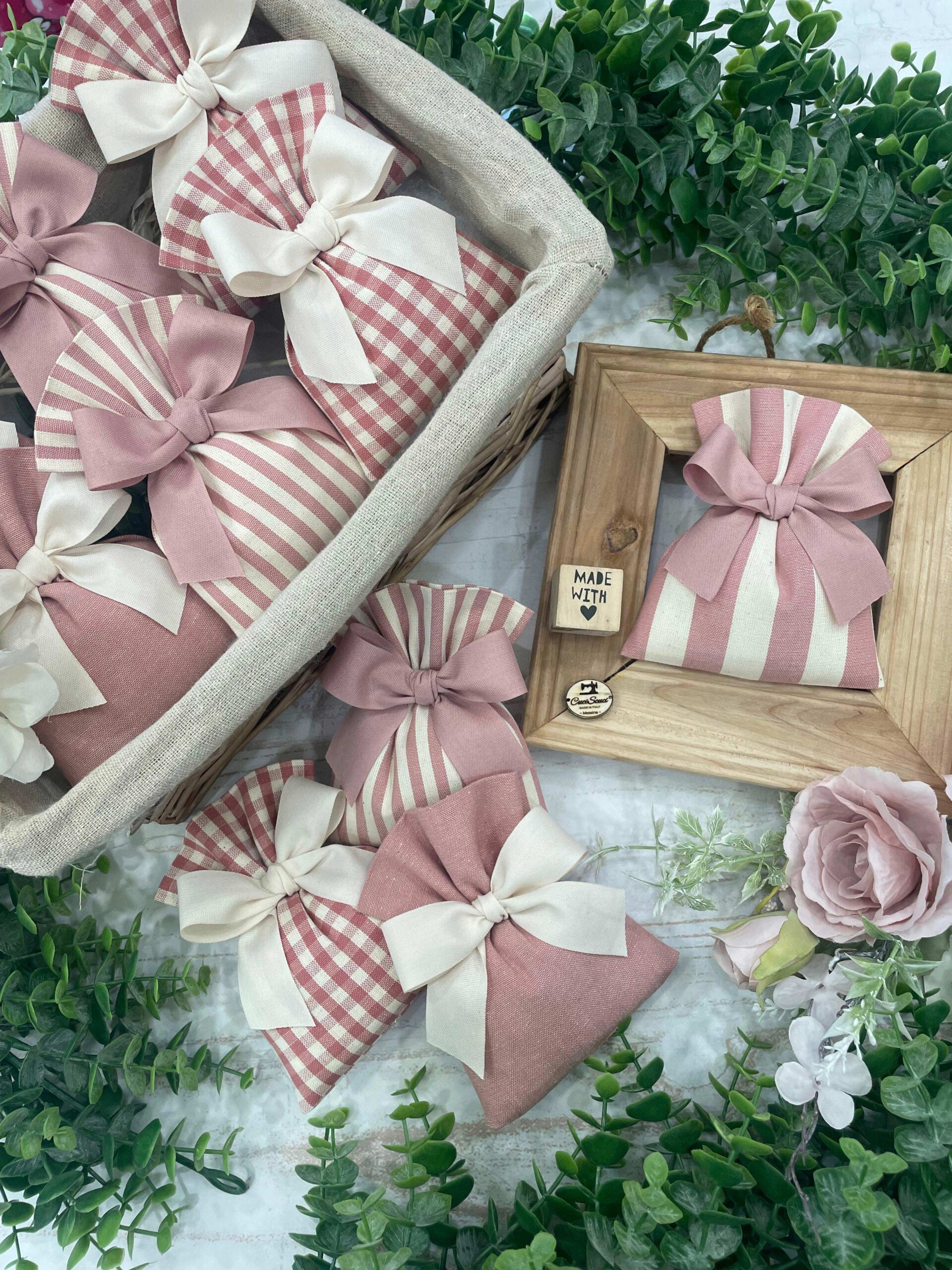 Realizzato in cotone tinto filo, disponibile in fantasie assortite (o a scelta) nei delicati toni del rosa antico, dona un tocco romantico e raffinato a ogni occasione speciale.