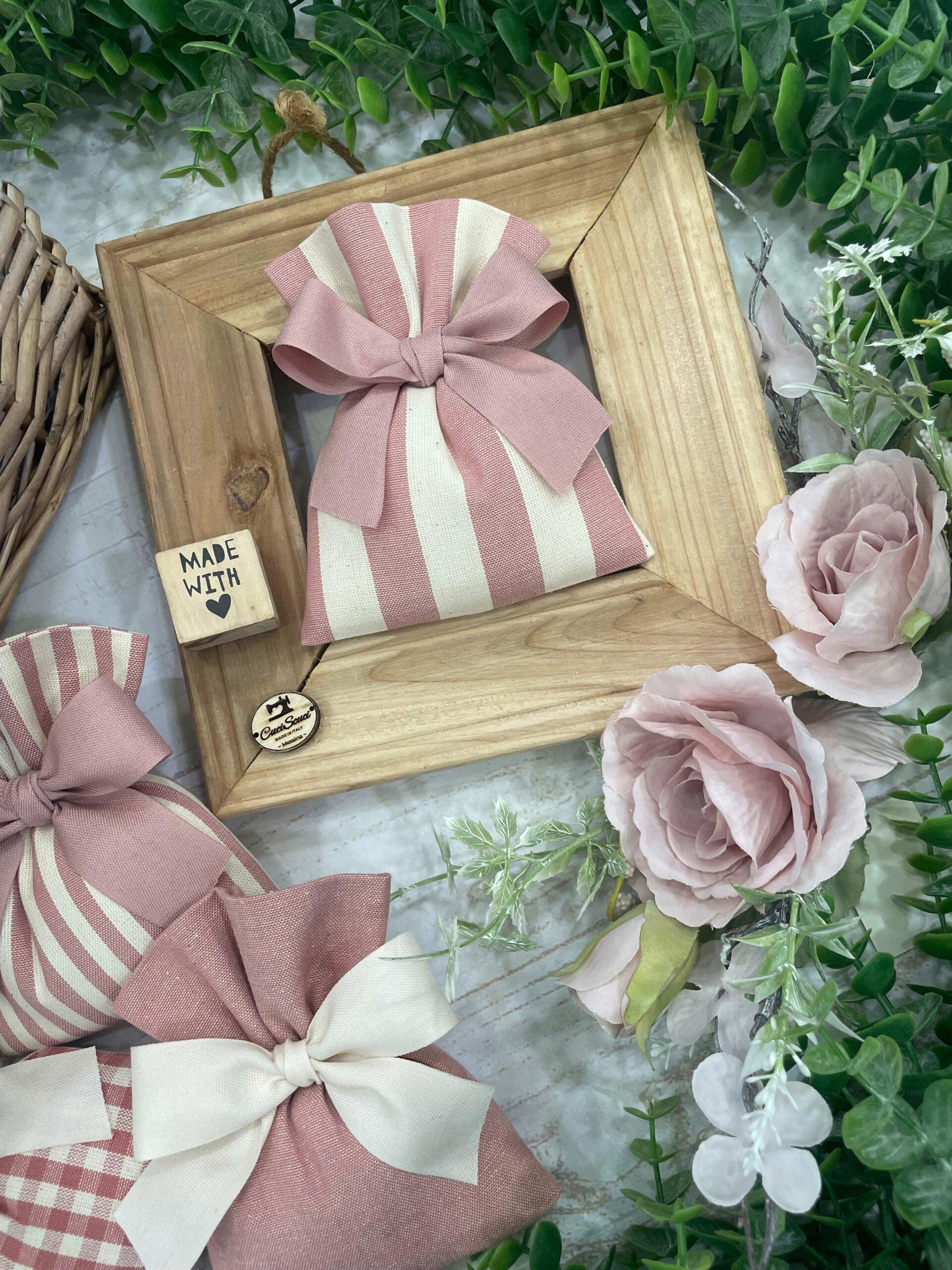 Un dolce ed elegante sacchetto sartoriale, cucito con grande cura dalla nostra sartoria.