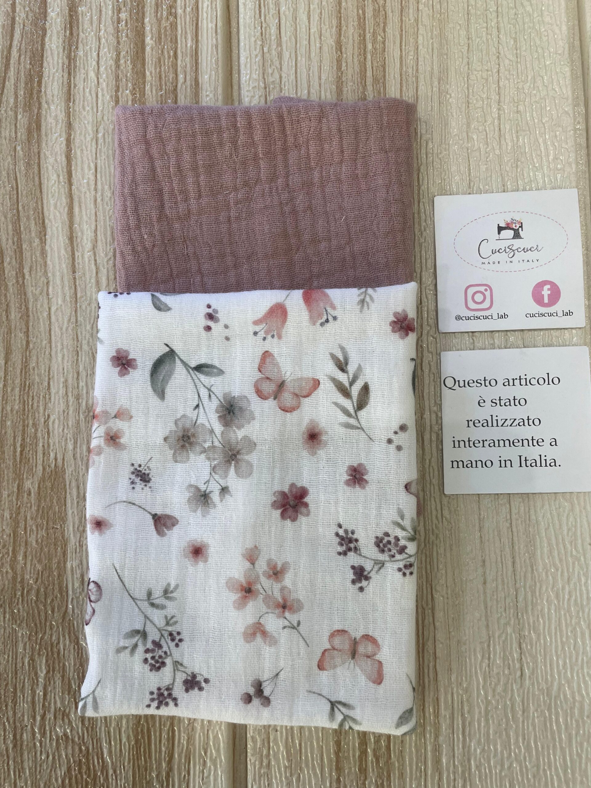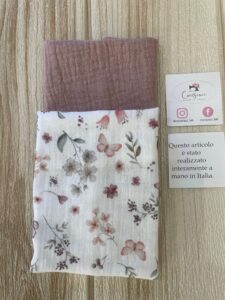 ✨ Sacchetto Artigianale in Mussola di Cotone Rosa Antico e Fantasia Floreale ✨