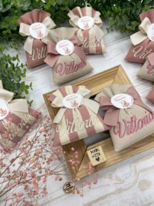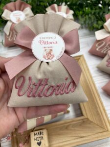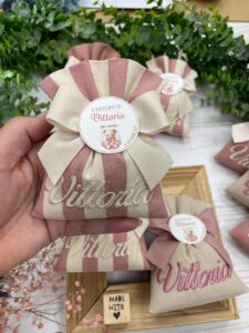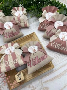 Un’elegante bomboniera artigianale, realizzata interamente a mano dalla nostra sartoria con passione e cura per i dettagli.