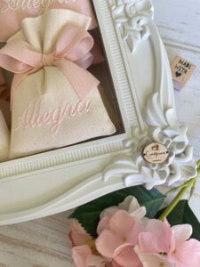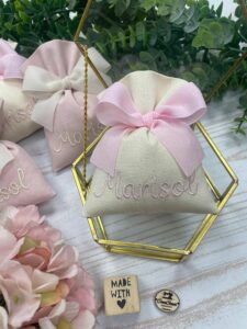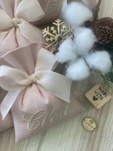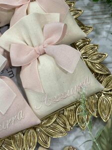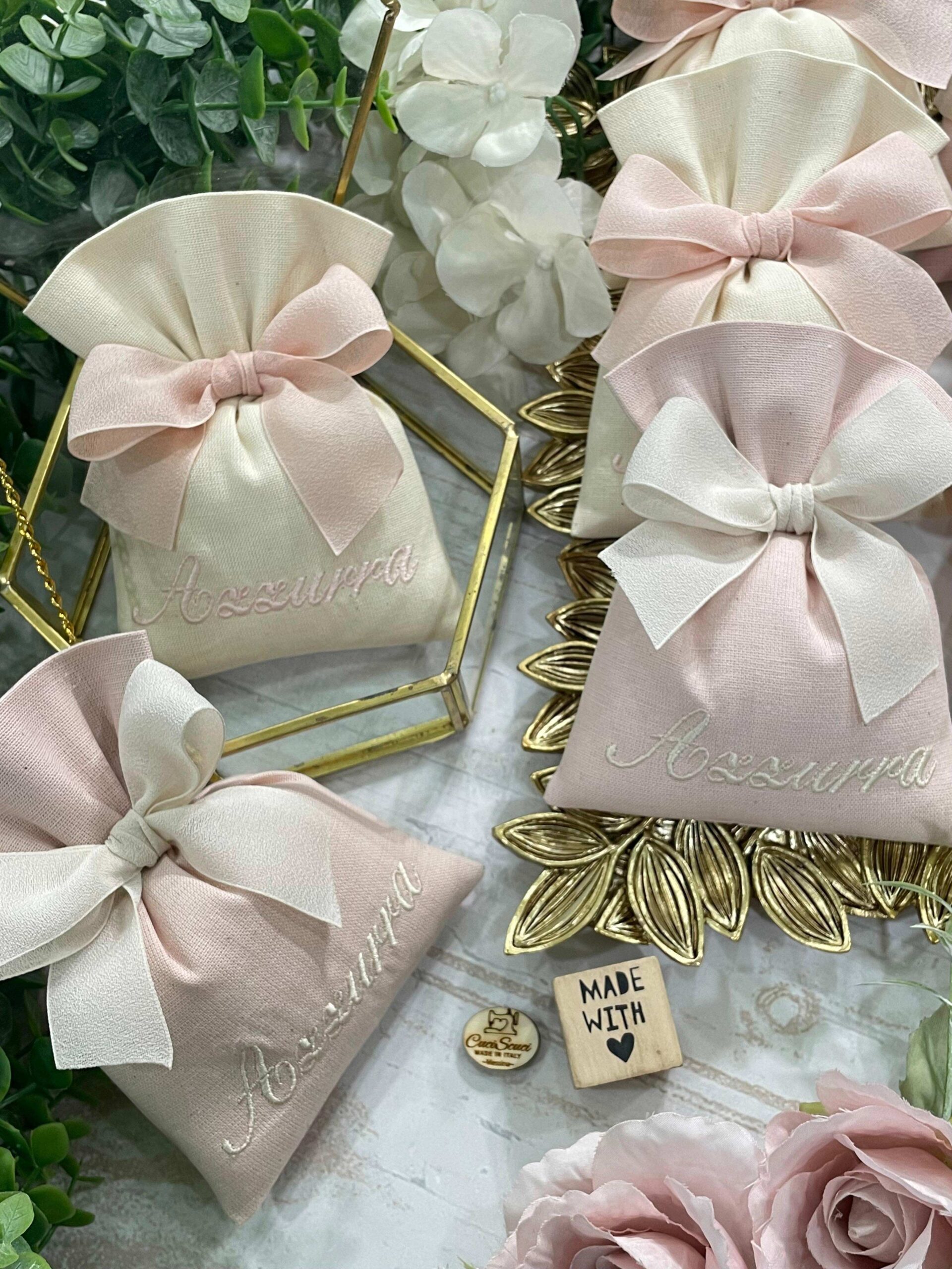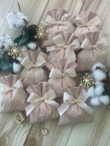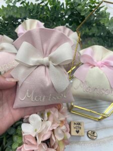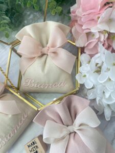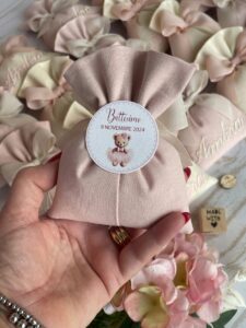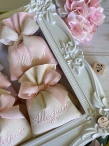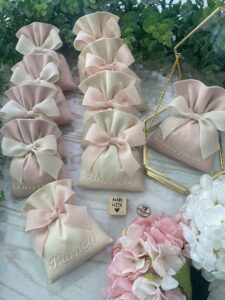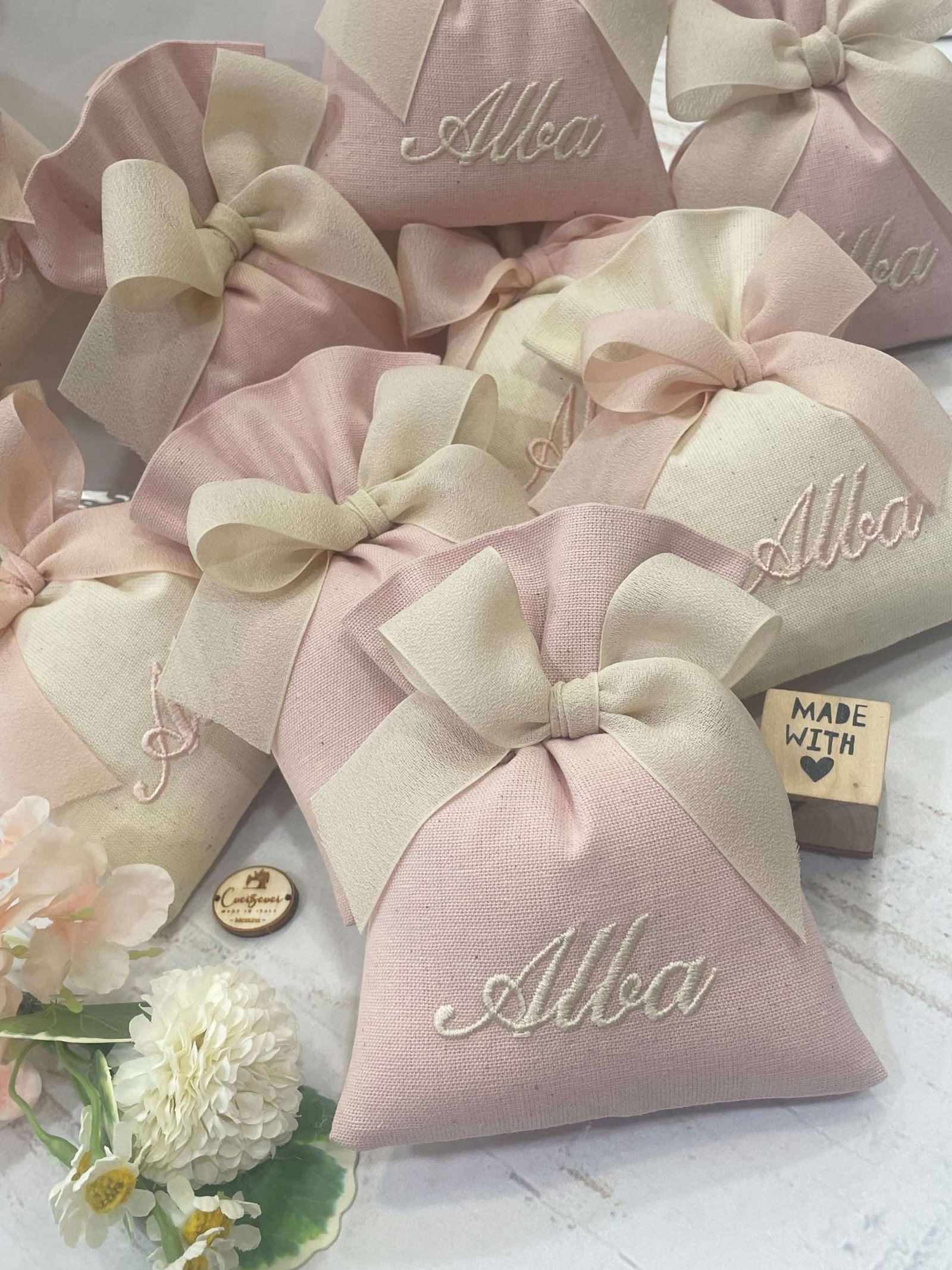 Un’elegante bomboniera artigianale, realizzata interamente a mano dalla nostra sartoria con cura e passione per i dettagli.