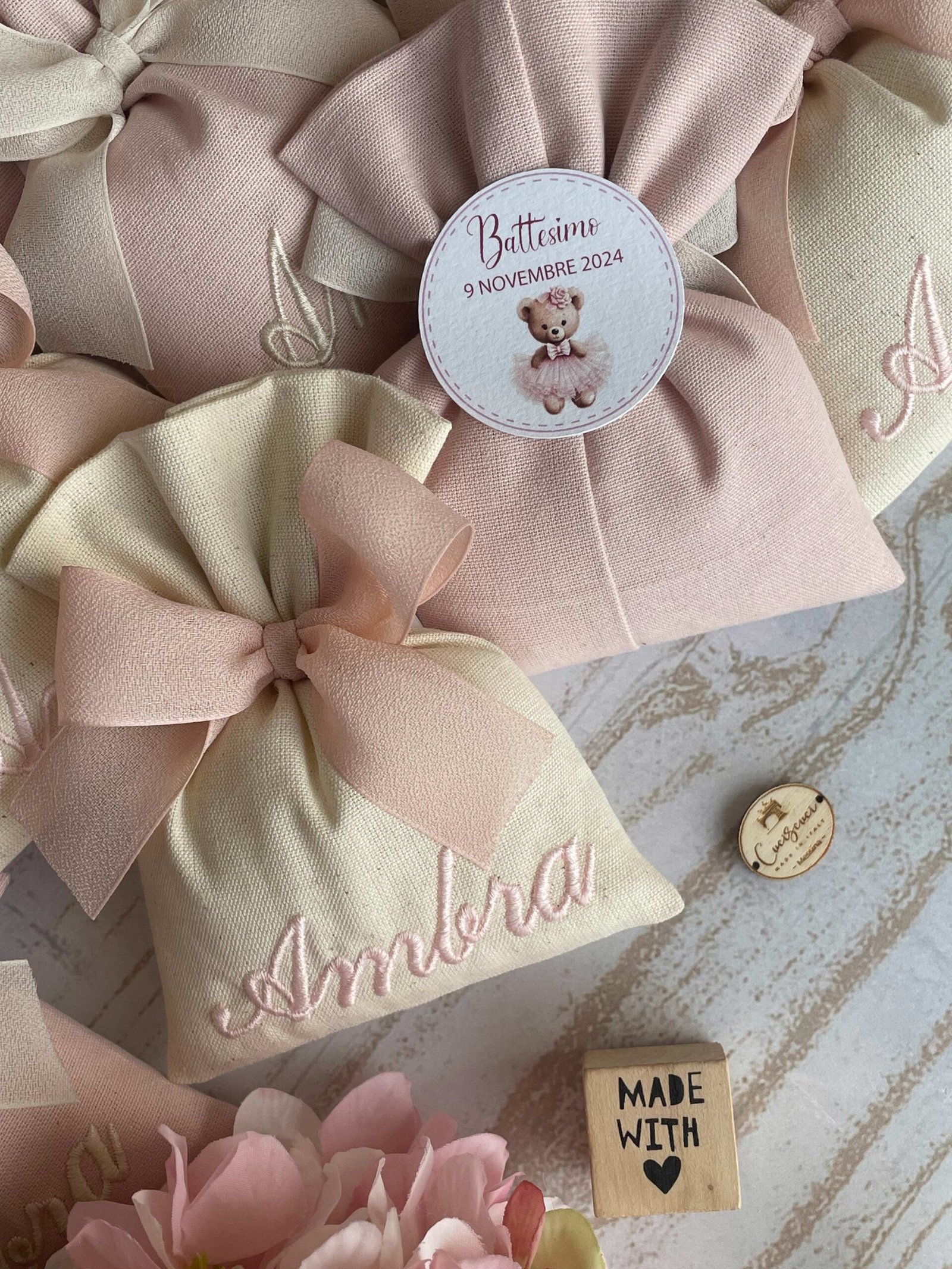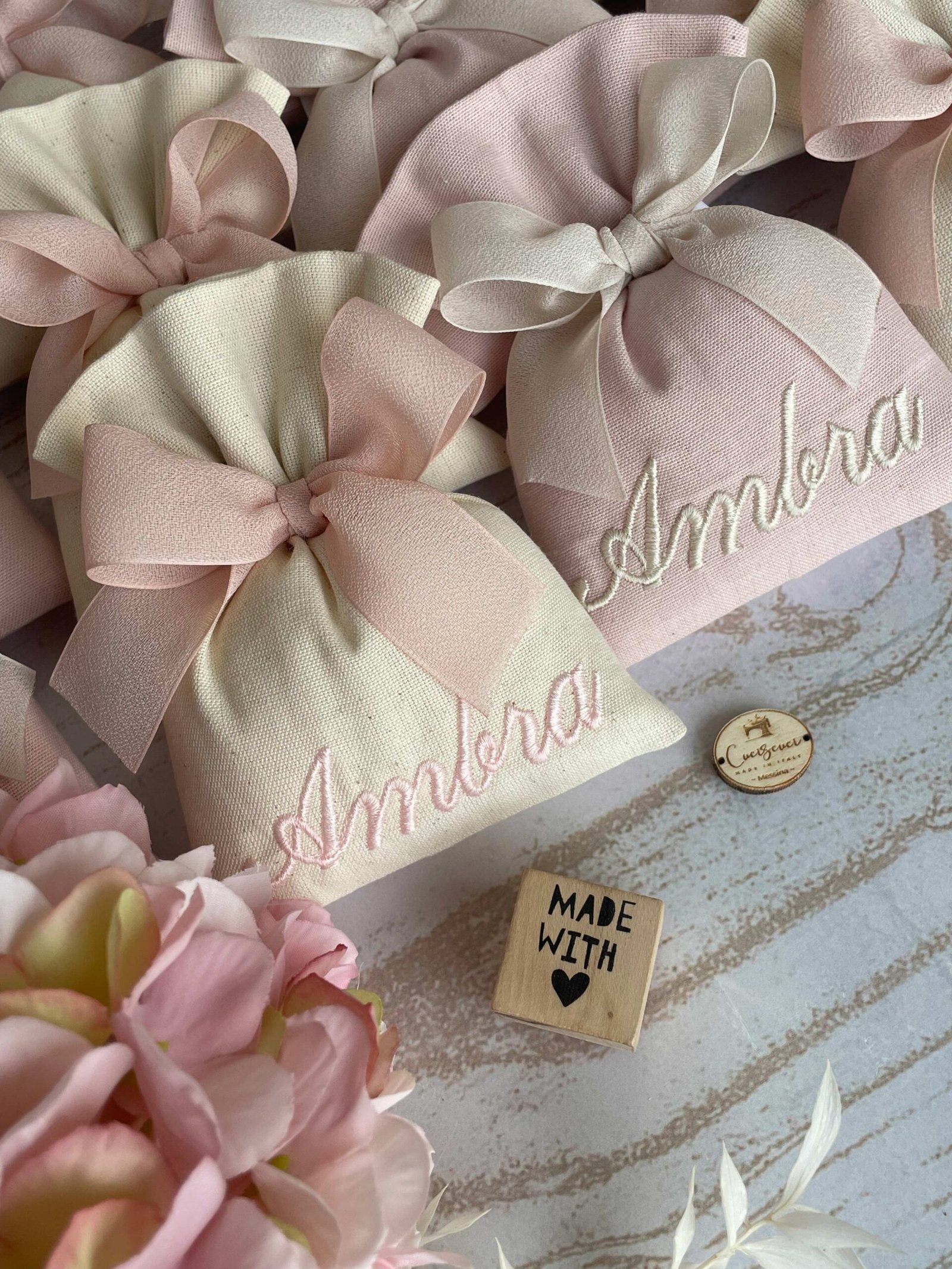 Fai da Te: ricevi il sacchetto già cucito e ricamato, da completare e confezionare personalmente secondo le tue preferenze.