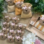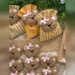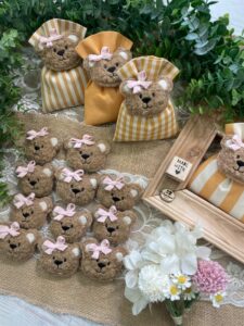 • Confezionato – bomboniera pronta da donare, con sacchetto, imbottitura in ovatta, fiocco abbinato, 5 confetti in busta sigillata e applicazione orsetto calamita
