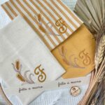 Il ricamo personalizzato con un’iniziale e una spiga di grano lo rende unico e prezioso.