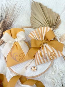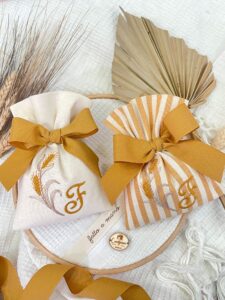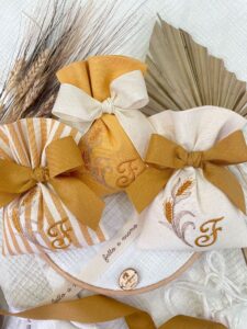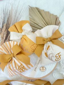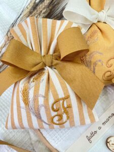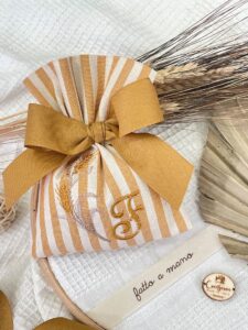 Un’elegante bomboniera artigianale, realizzata con amore e precisione nella nostra sartoria.