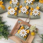 ✨ Sacchetto Artigianale in Cotone Verde con Calamita Personalizzata a Forma di Margherita ✨