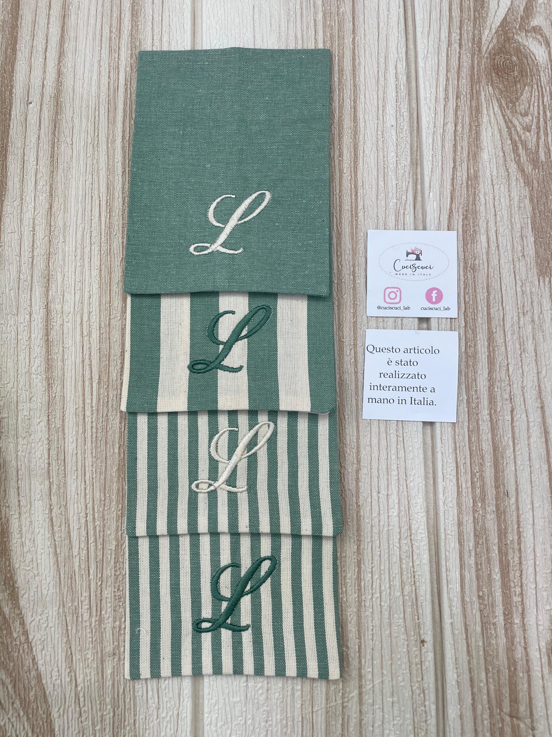 ✨ Sacchetto Artigianale in Cotone Verde e Panna con Iniziale Ricamata ✨