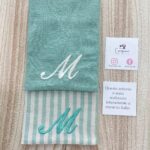 Confezionata in cotone Rodas nei toni freschi del verde menta, è impreziosita da un ricamo personalizzato con iniziale, simbolo di unicità e raffinatezza.