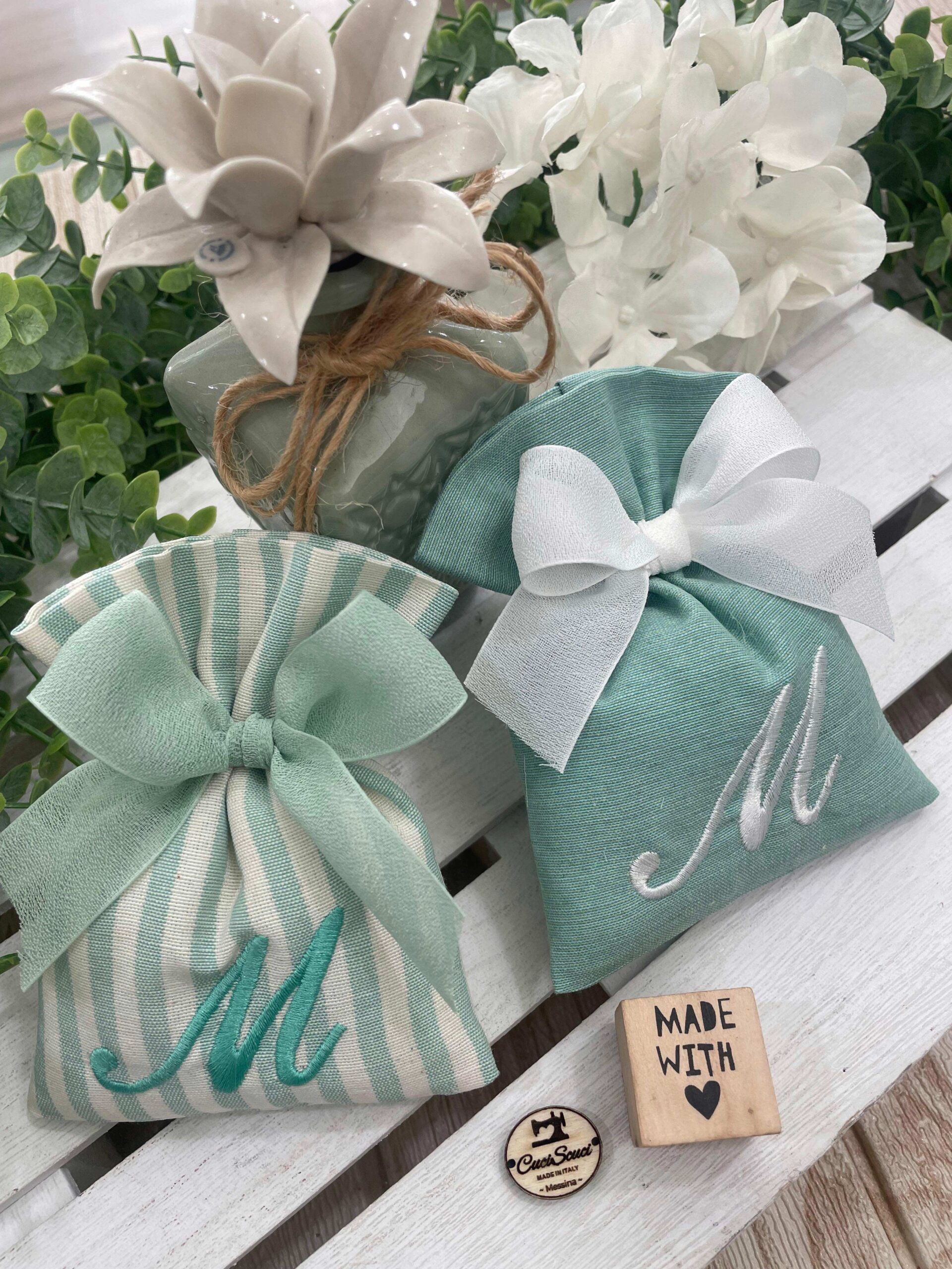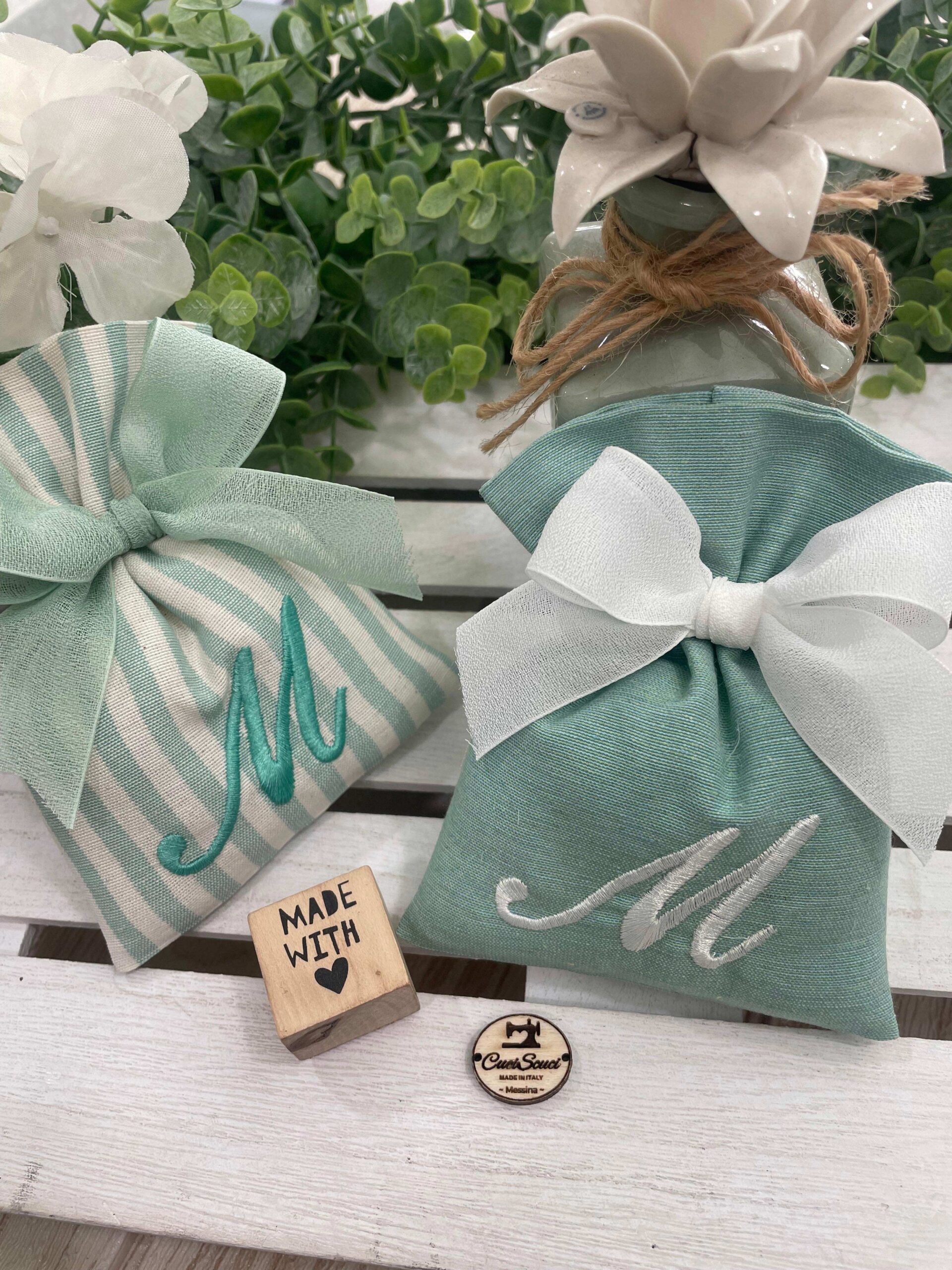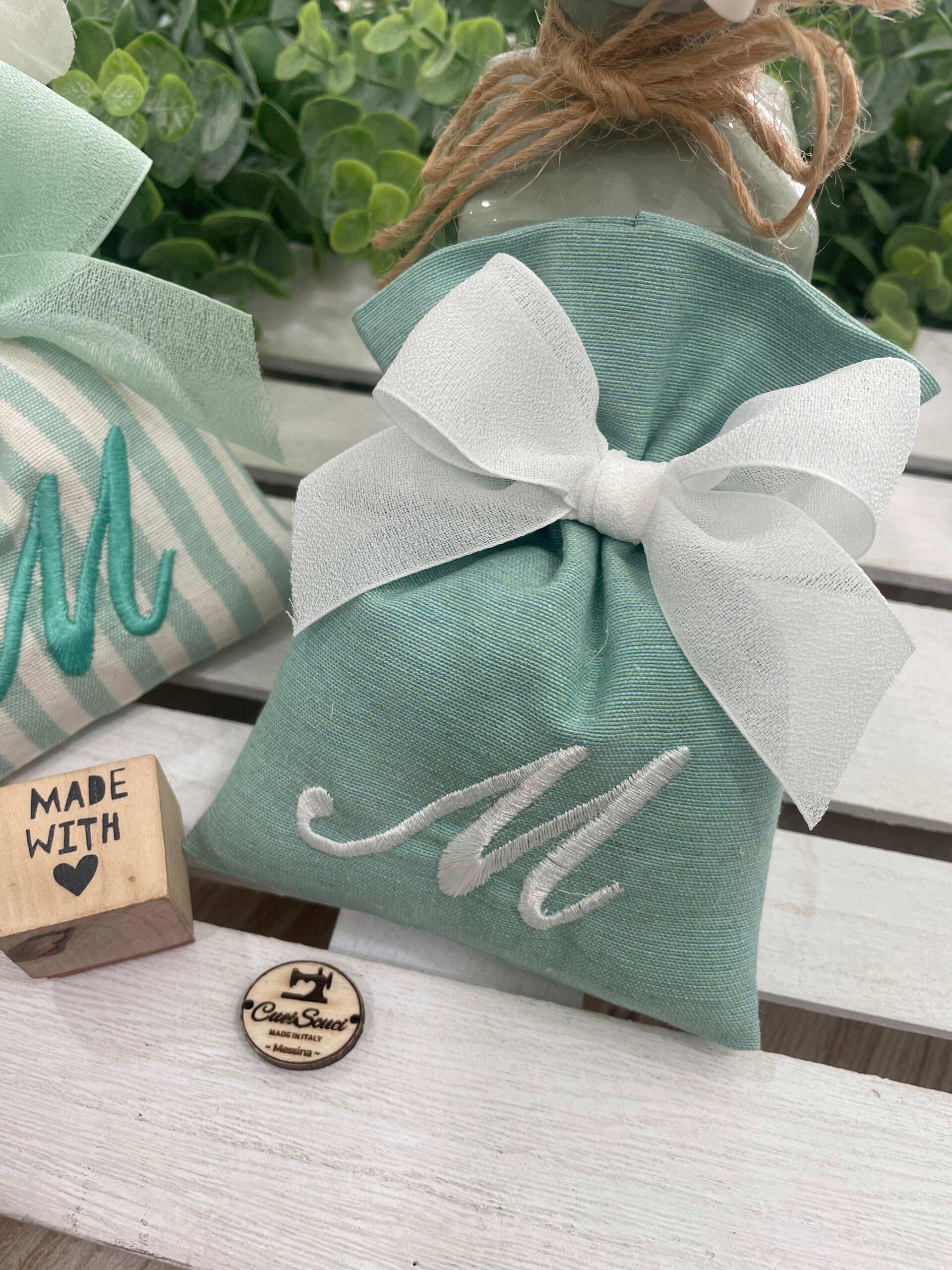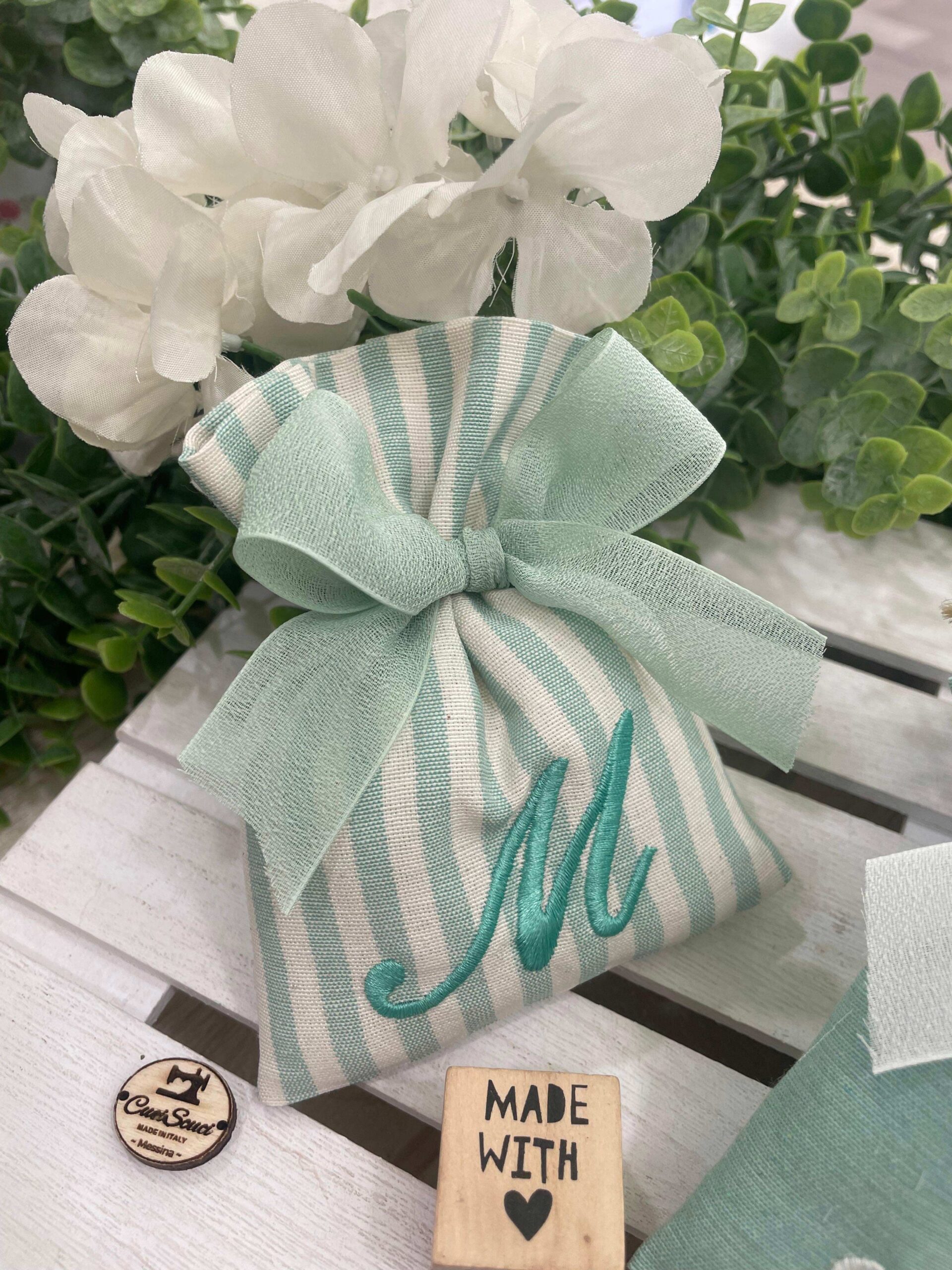 Sacchetto Artigianale Verde Menta con Iniziale Ricamata