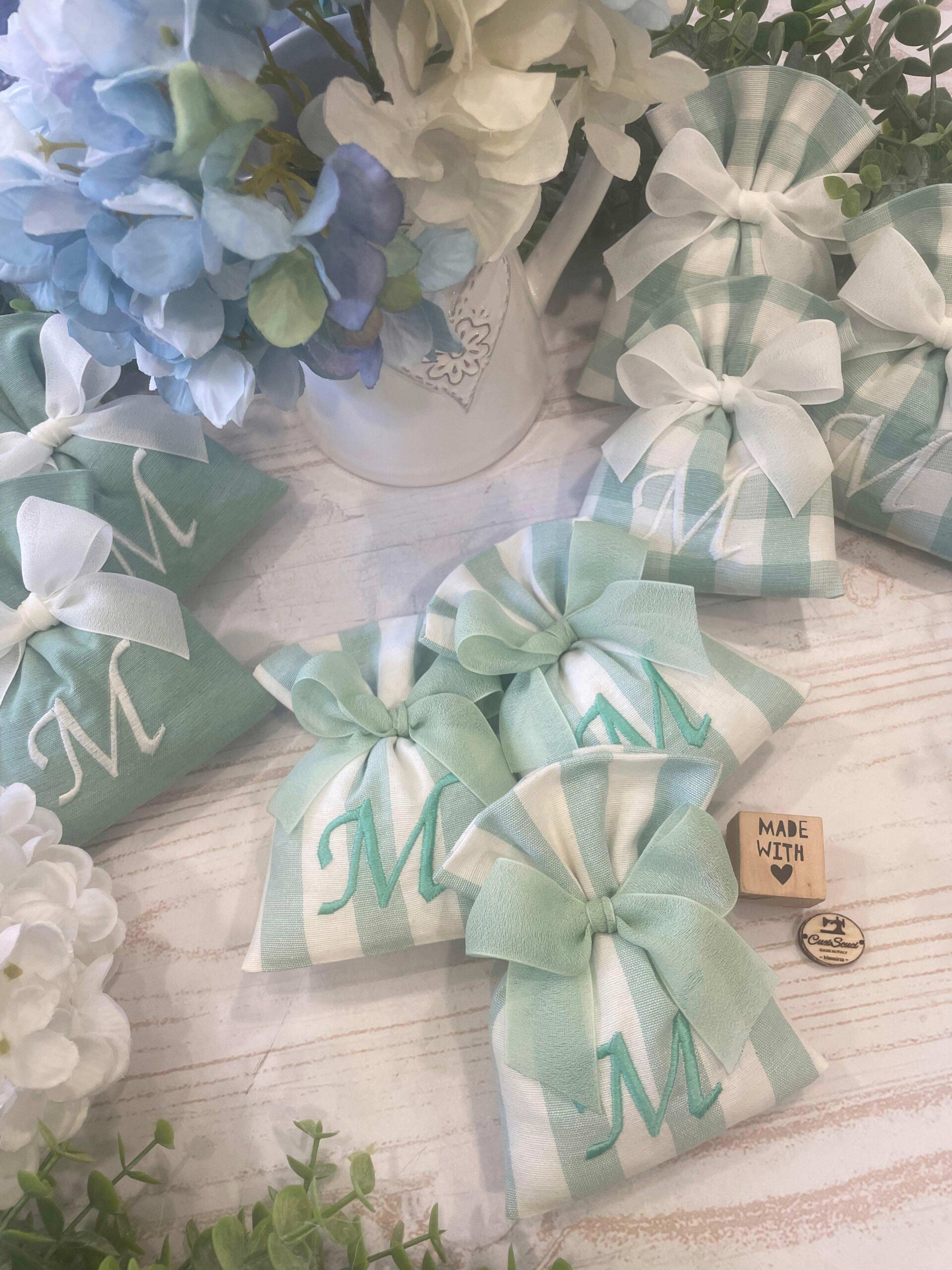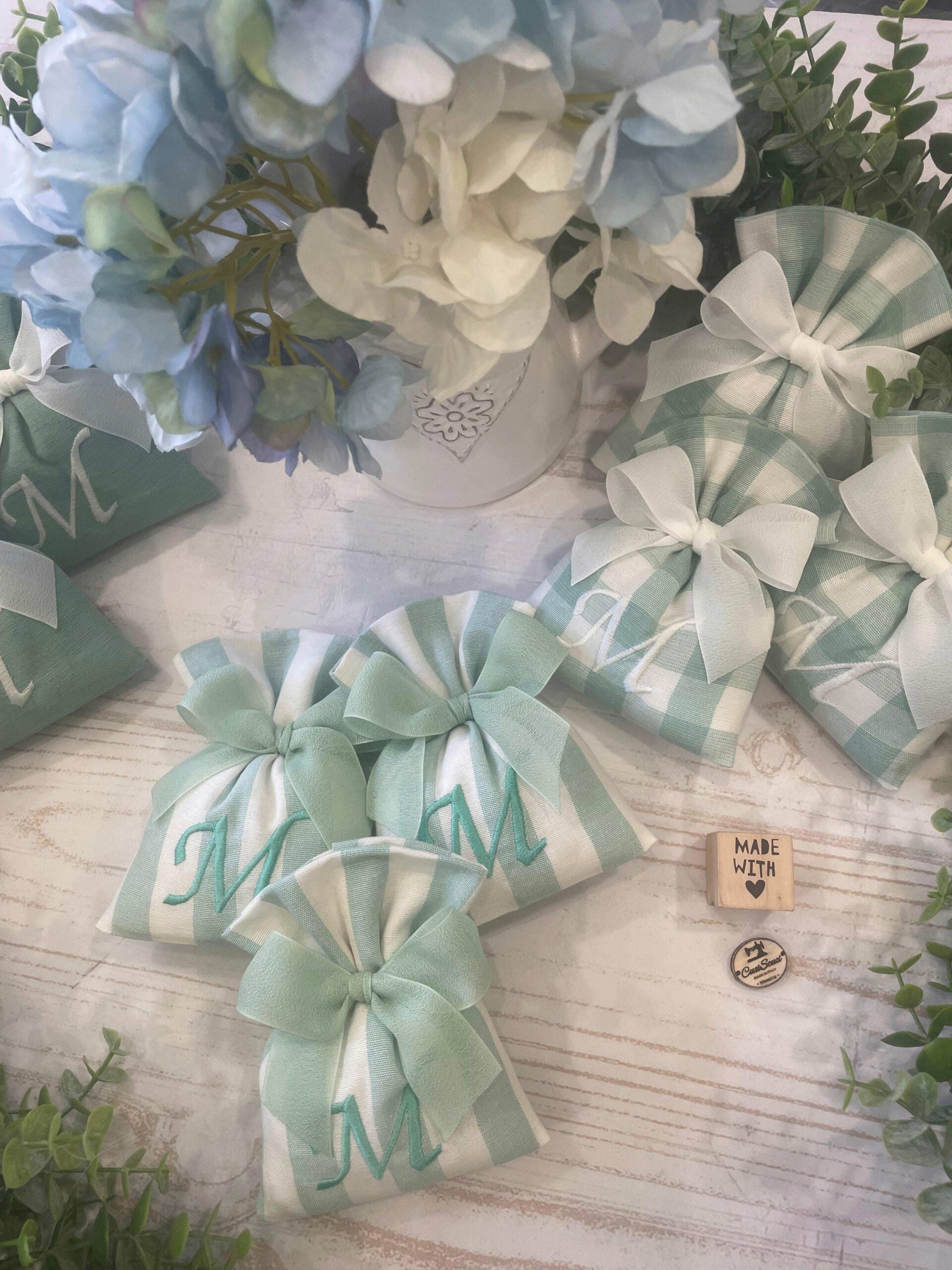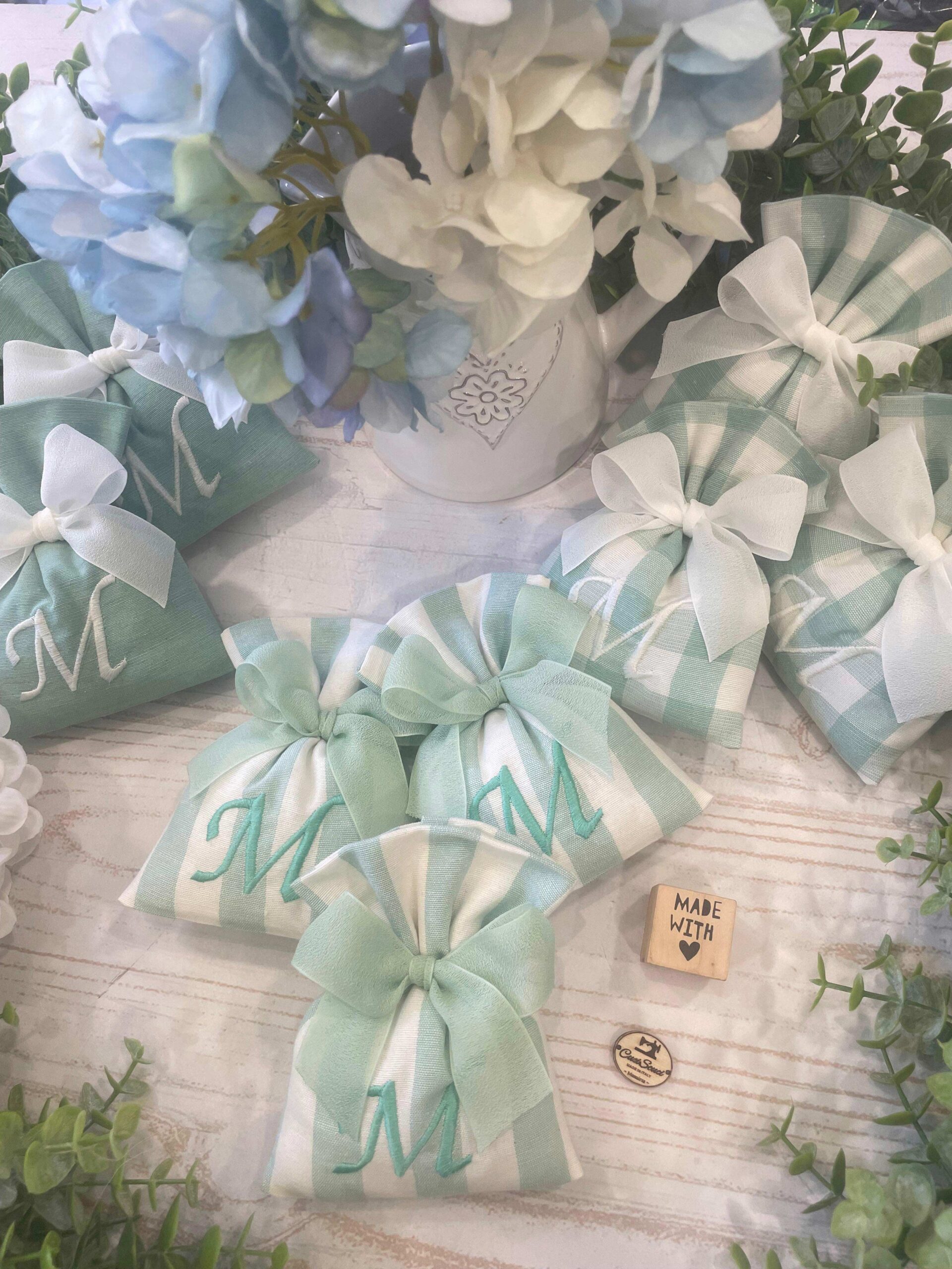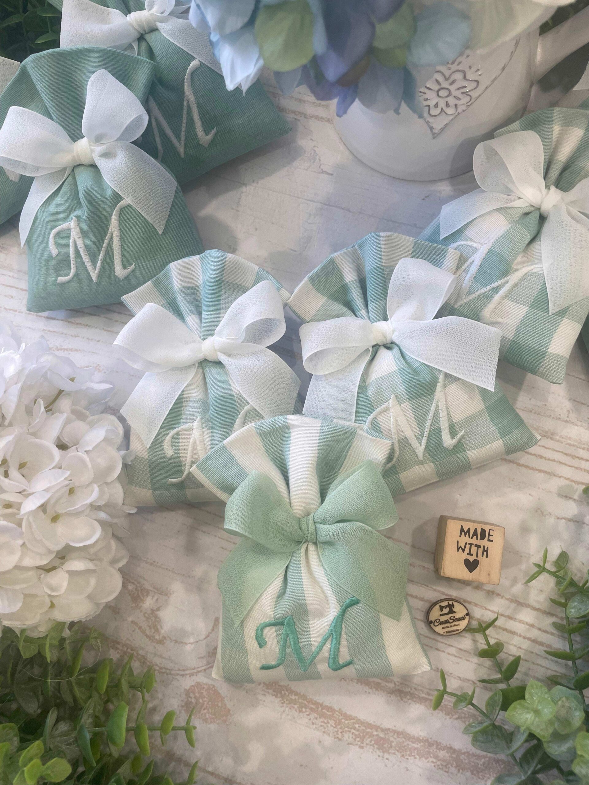 Sacchetto Artigianale Verde Menta con Iniziale Ricamata
