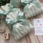 Un’elegante bomboniera, realizzata interamente a mano dalla nostra sartoria con cura e passione per i dettagli. Questo sacchetto in cotone panama è disponibile in fantasie assortite (o a scelta) nei delicati toni del verde pastello, impreziosito dal ricamo personalizzato di un’iniziale.