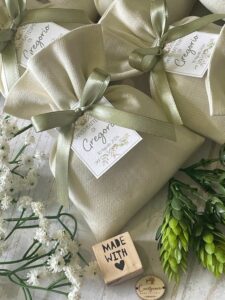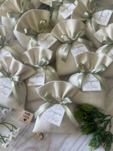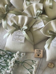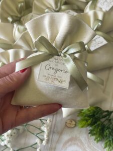 Un’elegante bomboniera, realizzata con passione e cura per i dettagli dalla nostra sartoria.
