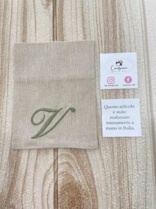 Ricamo personalizzato con iniziale verde salvia