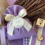 Confezionato in cotone tinto filo in fantasie assortite (o a scelta), nei raffinati toni del lilla, è la bomboniera ideale per celebrare i momenti più importanti.