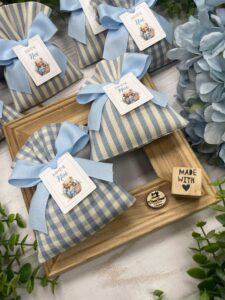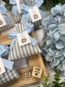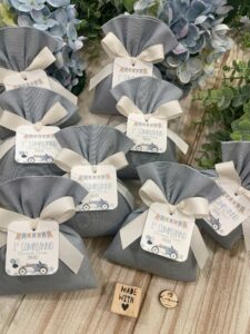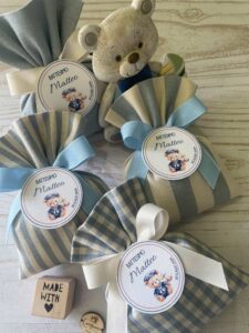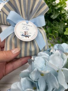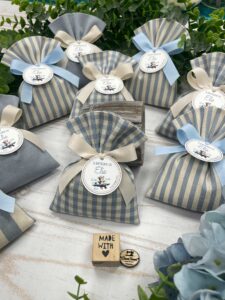 Un’elegante bomboniera artigianale, realizzata interamente a mano dalla nostra sartoria con cura e passione per i dettagli.