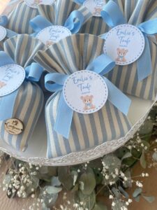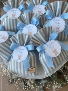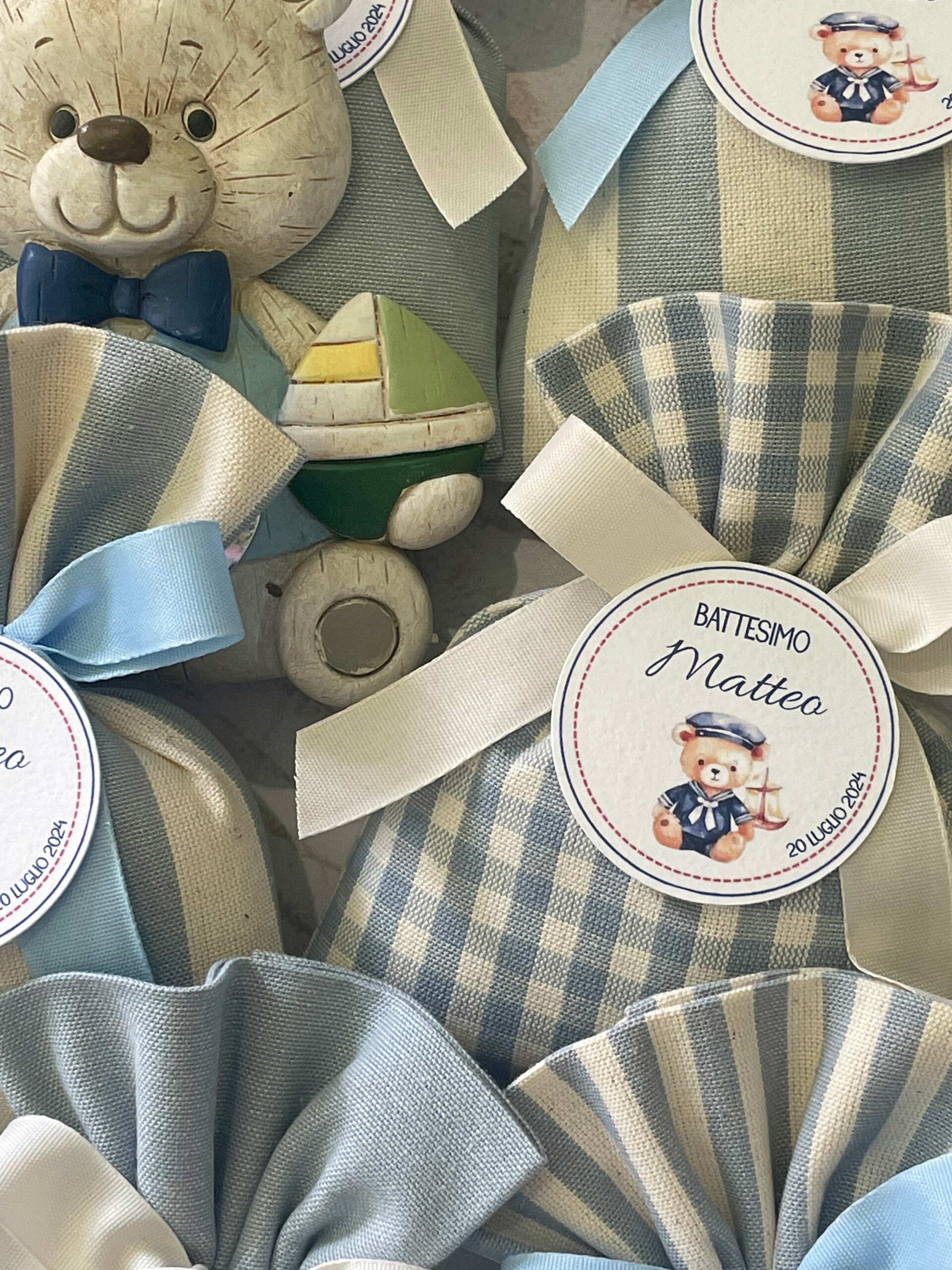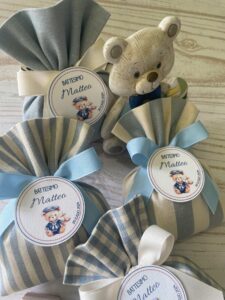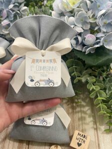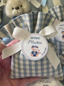Sacchetti di Battesimo belli già sul sito, ma ancora più belli e carichi di emozione quando arrivano a casa. Di buon tessuto e ben rifiniti. La Sig.ra Maria Grazia, di grande gentilezza, ti contatta appena fatto l’ordine per definire nuance dei tessuti, confetti e tag, ma anche durante tutta la lavorazione del prodotto, rendendoti presente e partecipe nonostante i kilometri di distanza. E’ una professionista che mette tutta la sua creatività ed amore in ciò che fà.