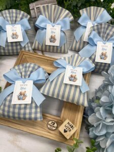 Un’elegante bomboniera, realizzata interamente a mano dalla nostra sartoria con cura e passione per i dettagli.